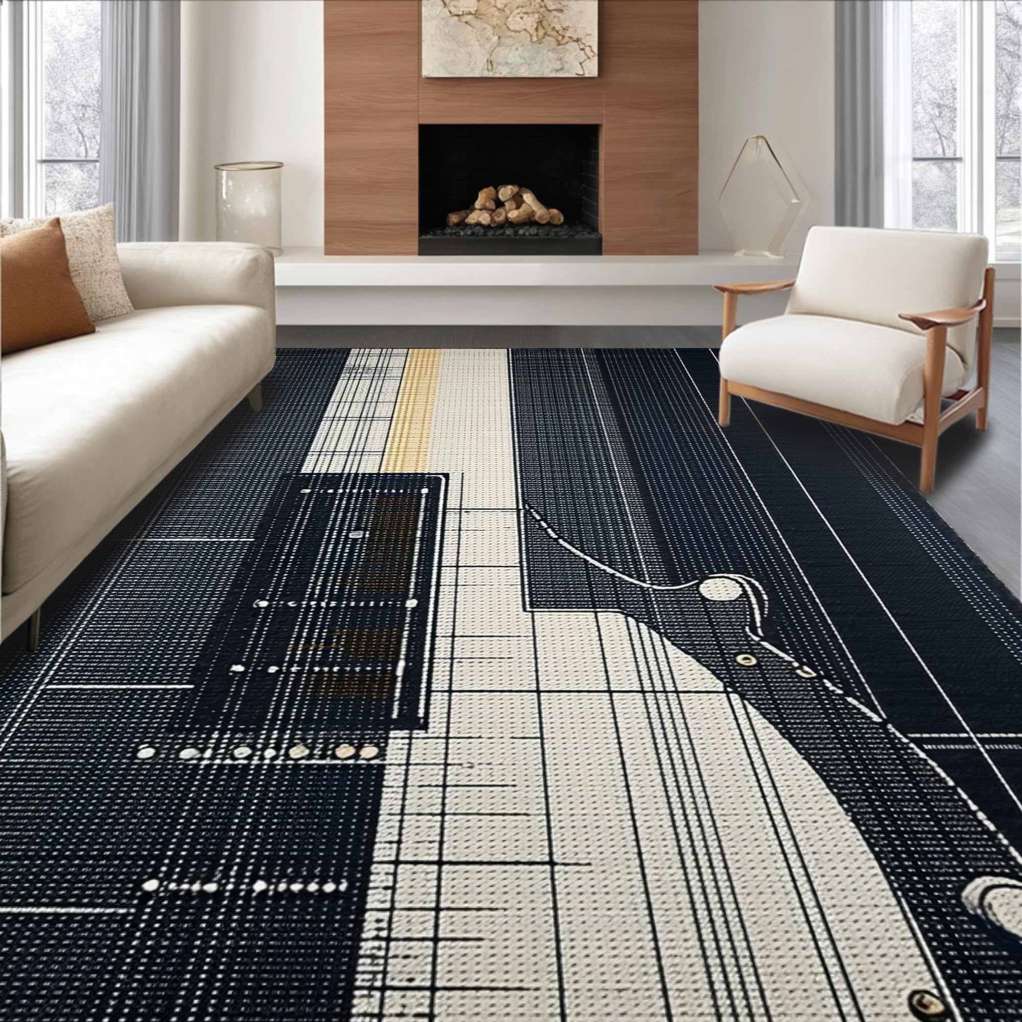 Minimalist Monochrome Linear with Bold Black and White Stripes(Black)