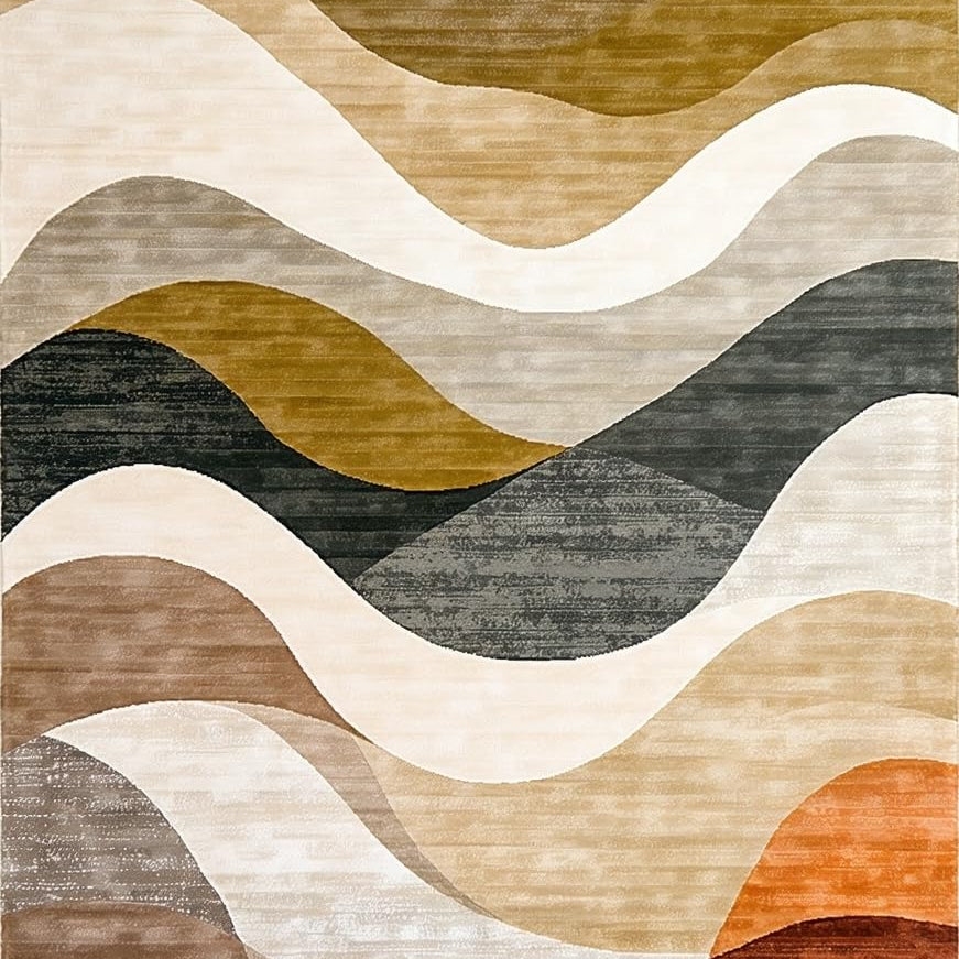 Modern Abstract Beige and Brown Area Featuring Artistic Wave(Beige)