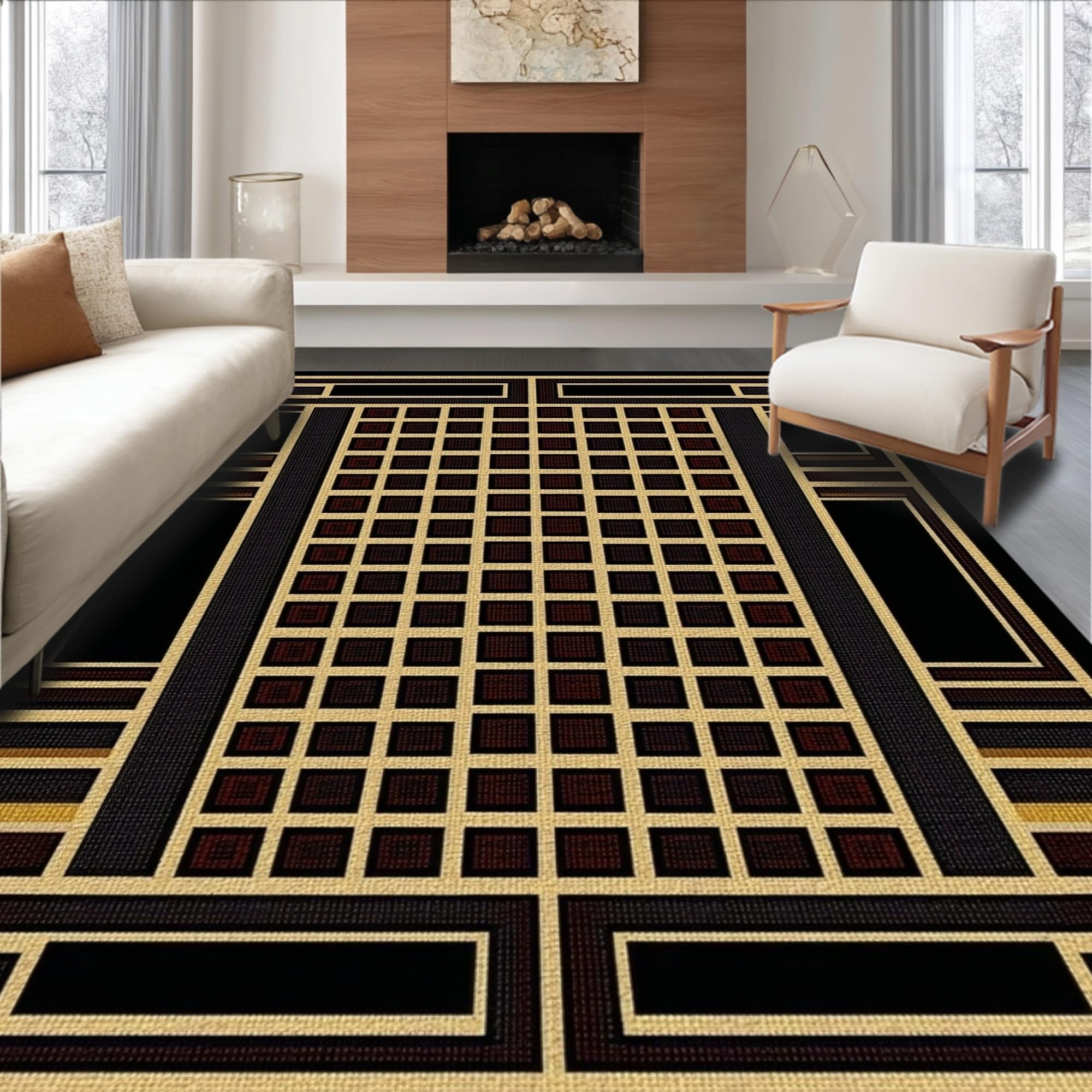 Modern Geometric Non Slip Neutral Patterned Stain Proof(Beige)