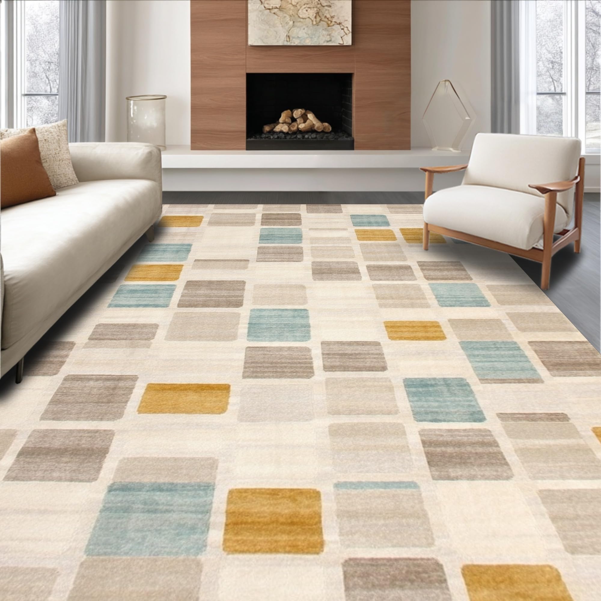 Modern Geometric Patchwork with Colorful Squares Beige Accents(Beige)