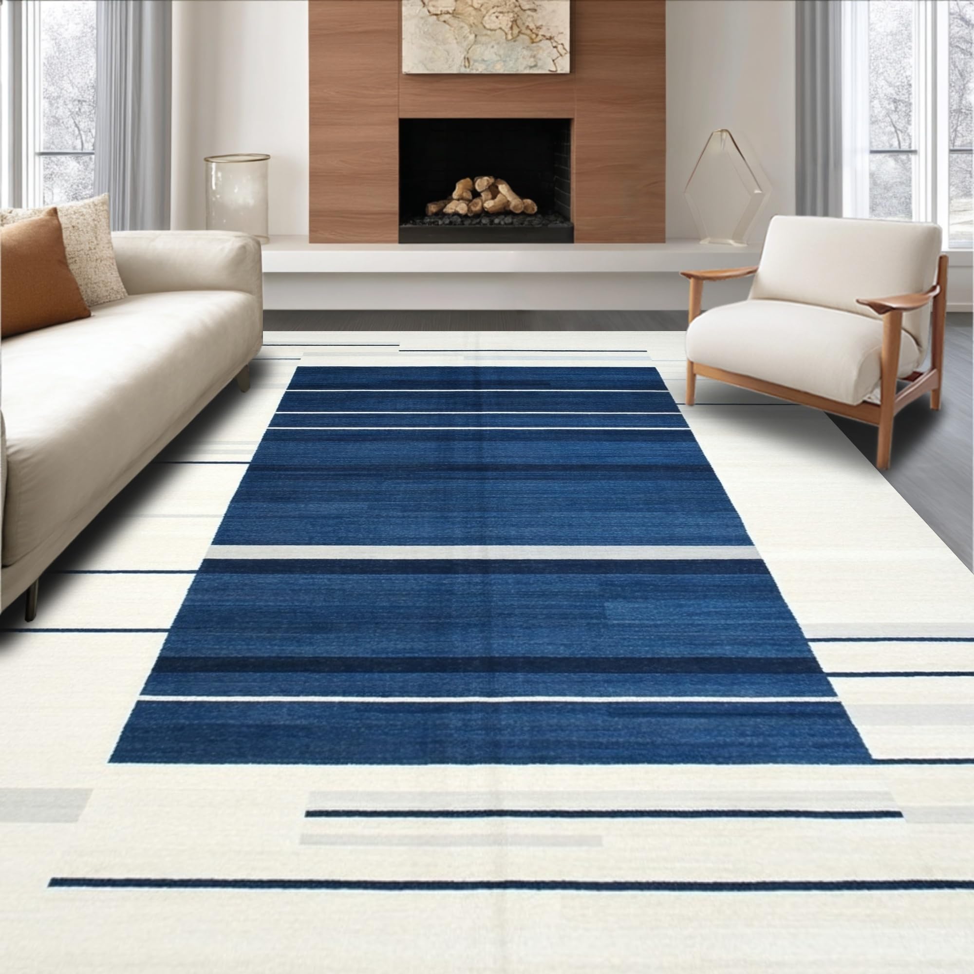 Modern Geometric with Navy and Cream Tones(Beige)