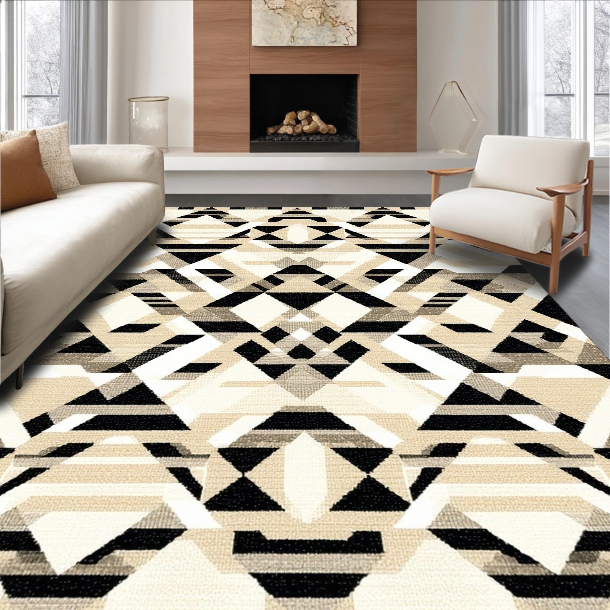 Modern Geometric With Interlocking Diamond in Neutral Hues(Beige)