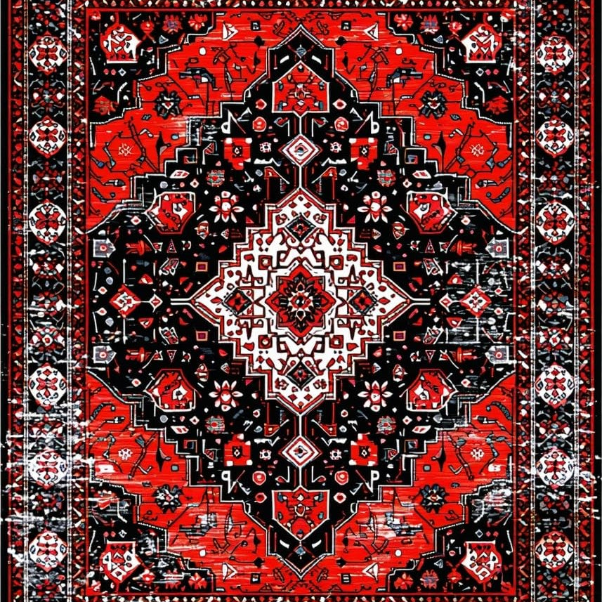 Modern Green Beige Lattice Area with Layered Diamond and Square Motifs(Green)