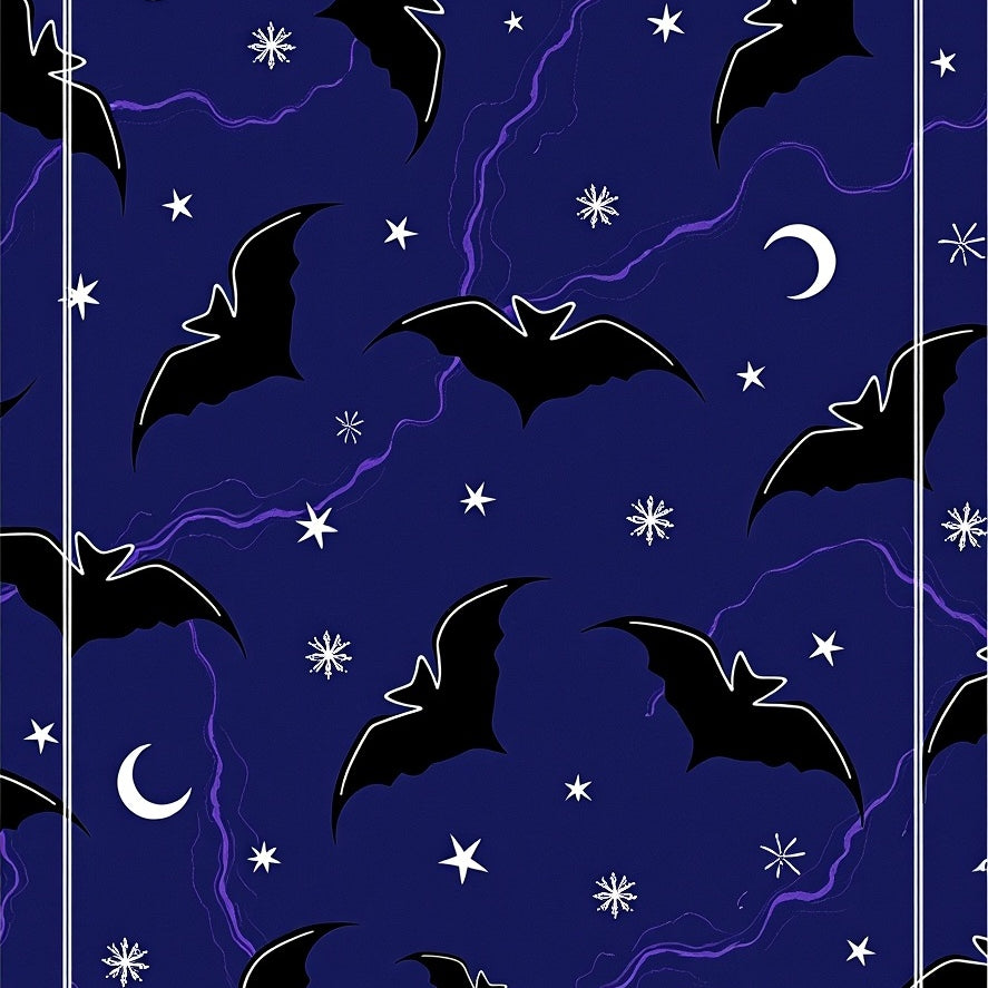 Enchanted Night Sky Astronomy with Flying Bat Silhouettes(Blue)