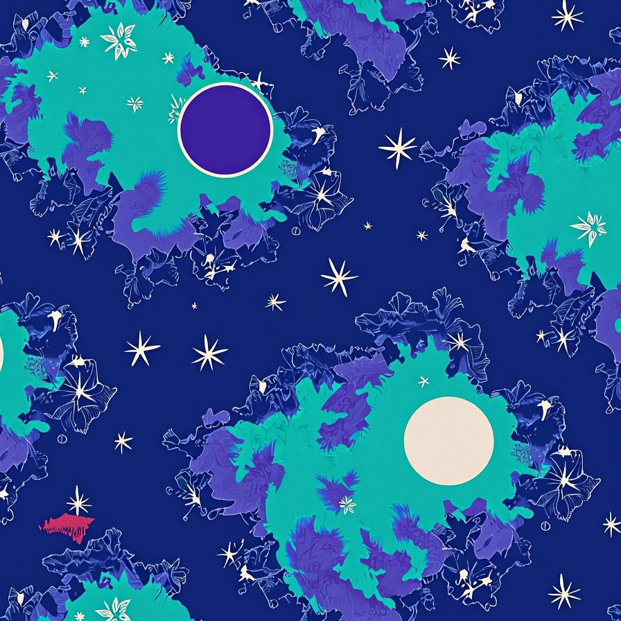 Enchanted Night Sky with Twinkling Stars and Lunar Motifs(Blue)