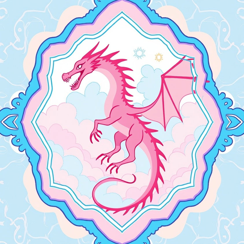 Enchanted Mythical Dragon Fantasy Whimsical Medallion Circular(Pink)