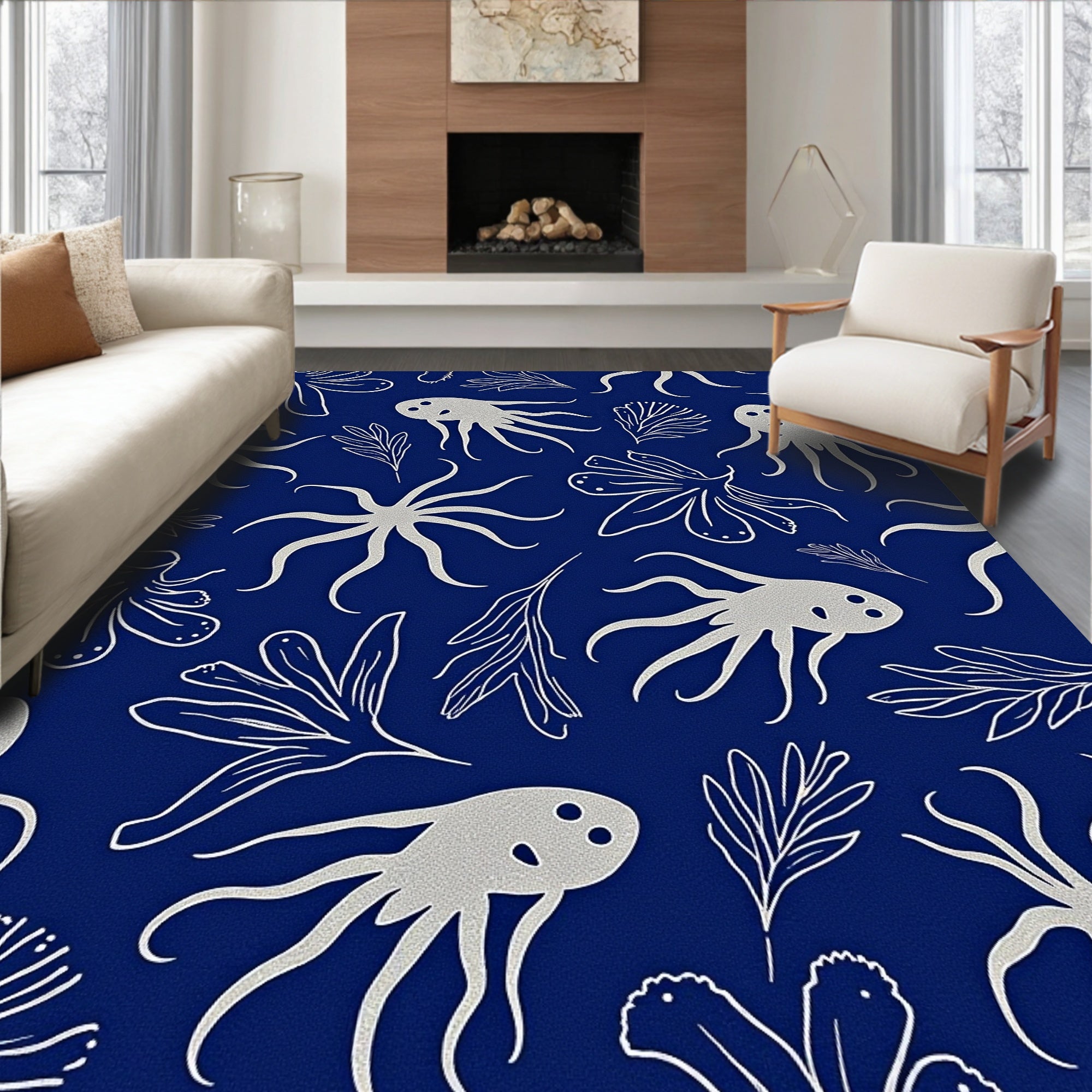 Enchanted Ocean Night Featuring Abstract Marine Creatures(Blue)
