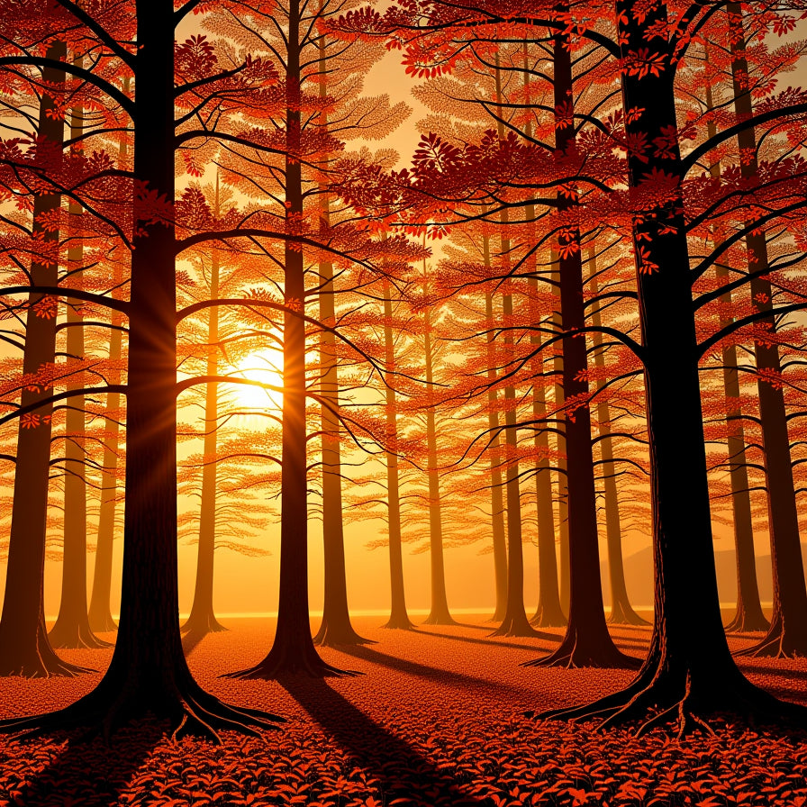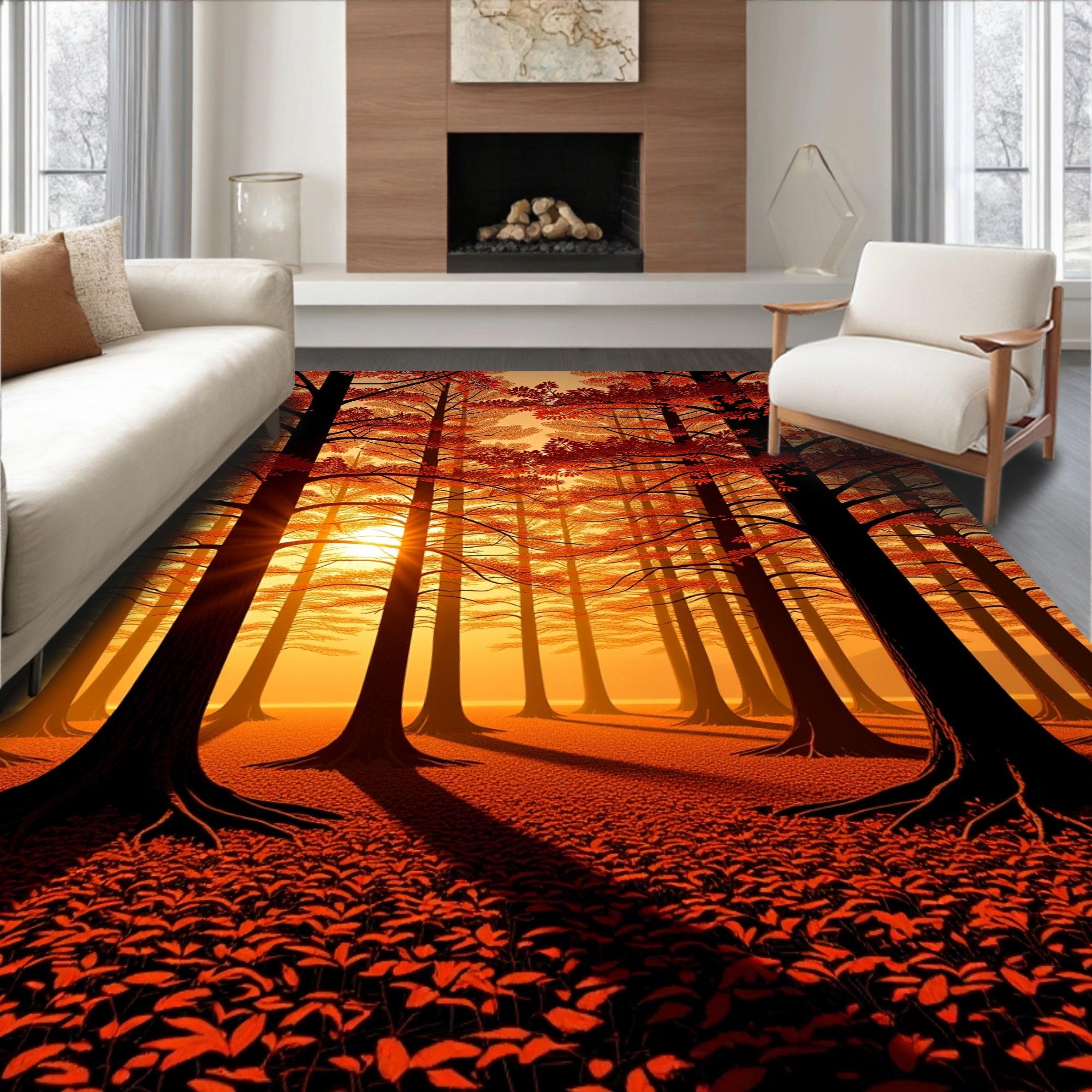 Enchanted Woodland Sunrise Tapestry With Autumnal Foliage(Orange)