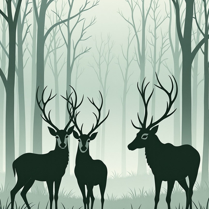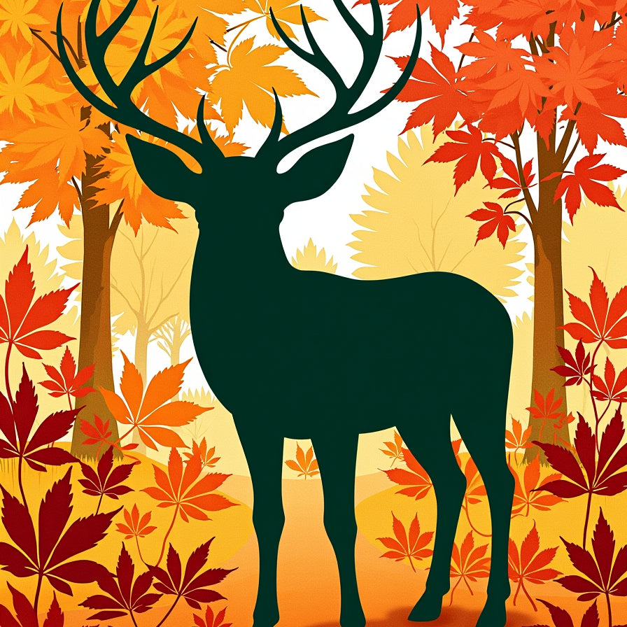 Enchanted Woodland Stag Among Maple Foliage(Green)