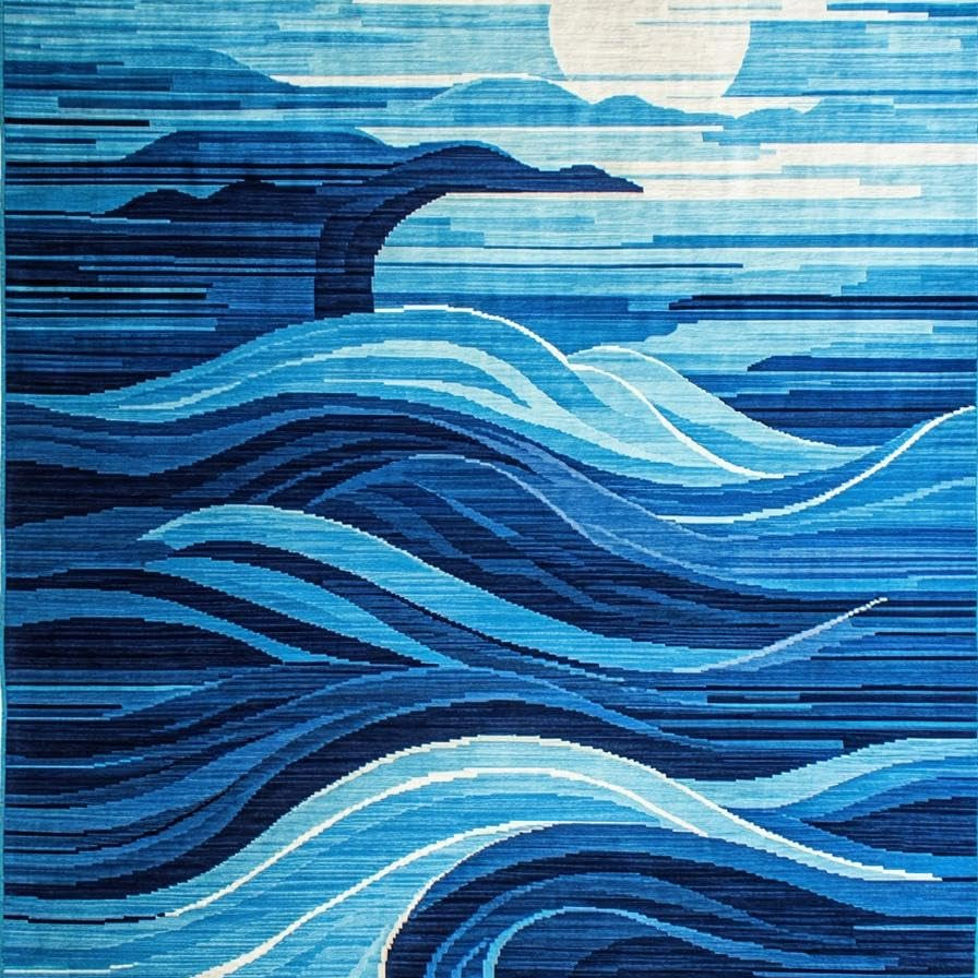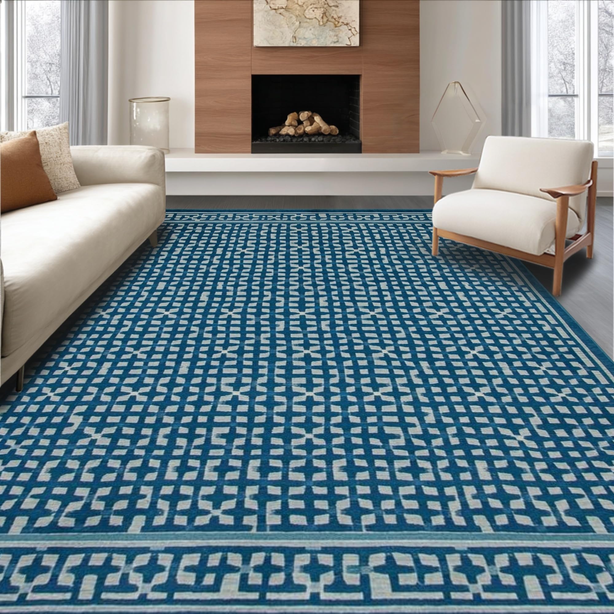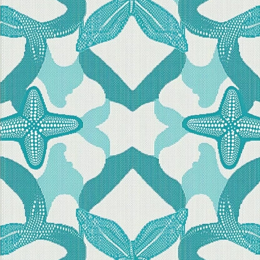 Modern Turquoise Beige Oriental Medallion(Blue)