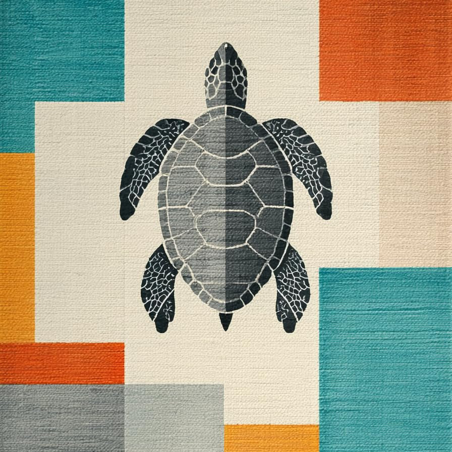 Modern Turtle Surfboard With Vibrant Ocean Inspired Color Blocks(Beige)