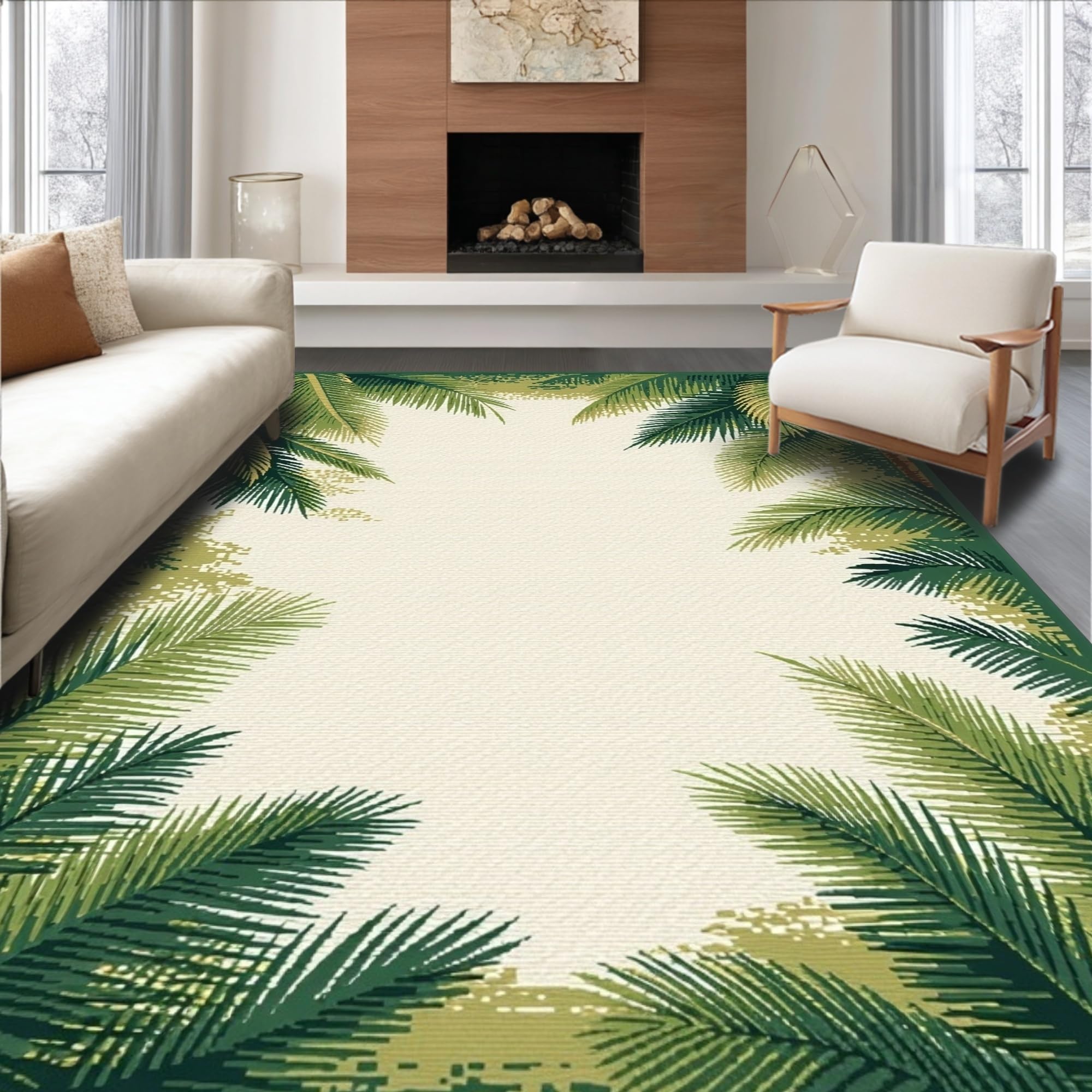 Modern Tropical Leaves Accent in Blue Grey Beige Hues(Blue)