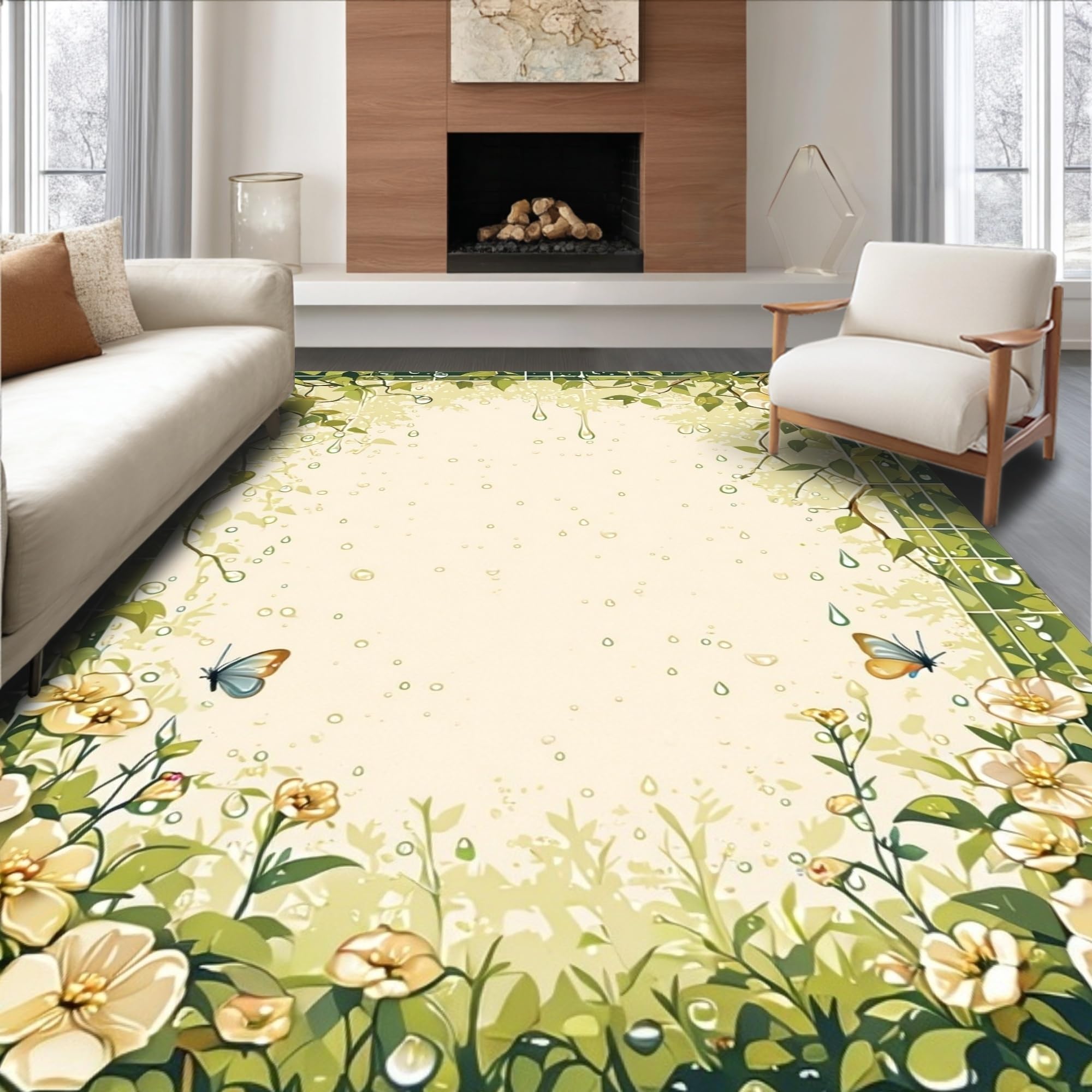 Beige Flower Power Entryway Vibrant Spring Low Pile(Beige)
