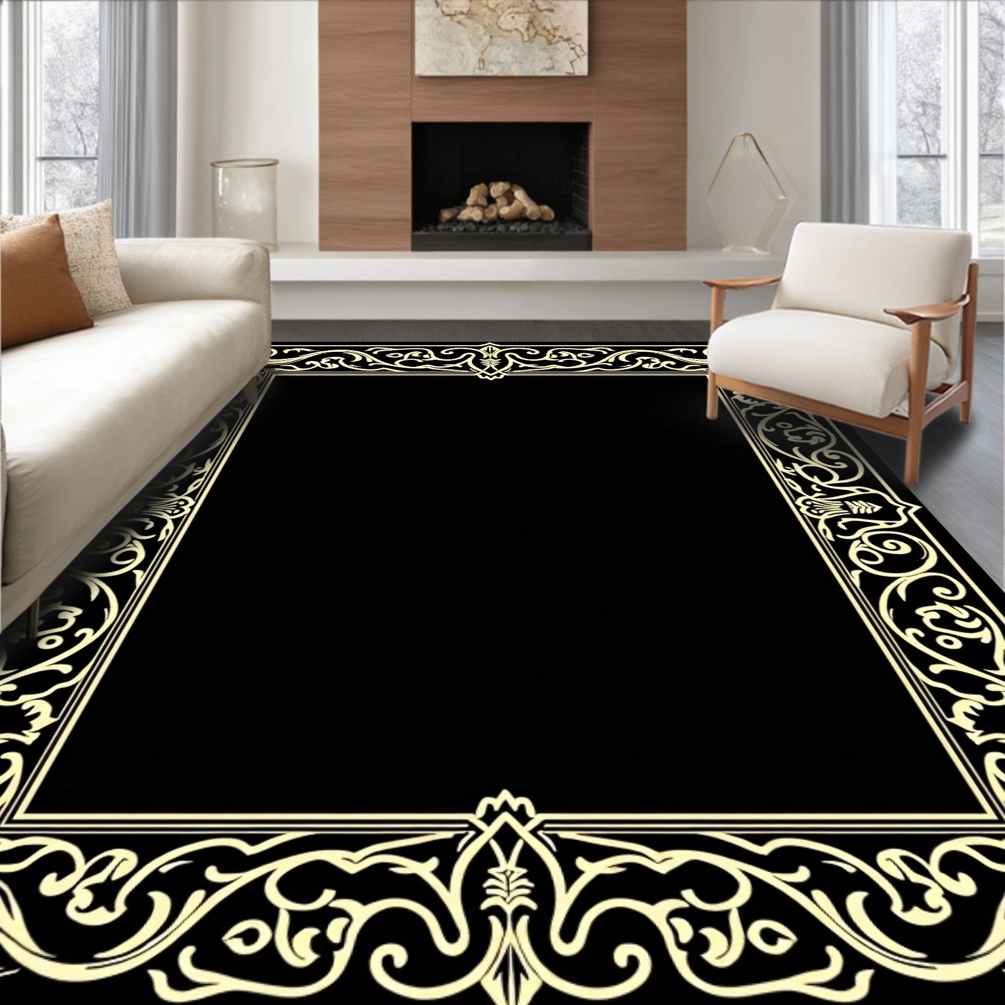 Baroque Scrollwork Medallion with Vintage Filigree Flourishes(Black)