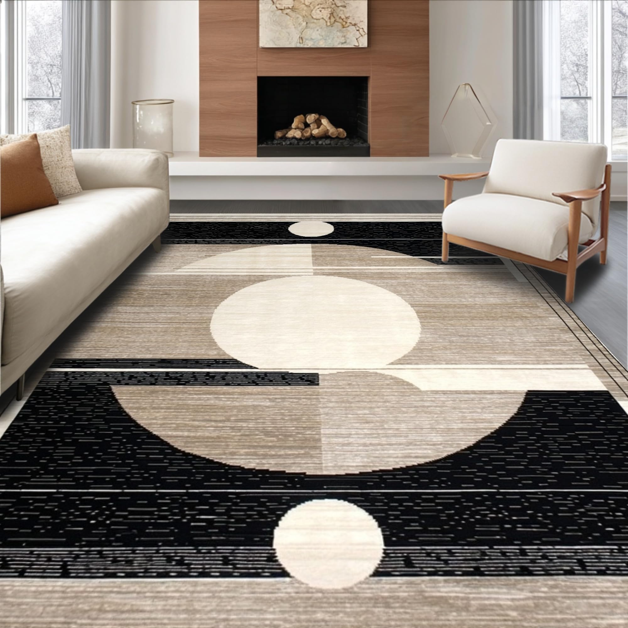 Abstract Mosaic Tile Beige Grey Area Artistic Floor(Beige)