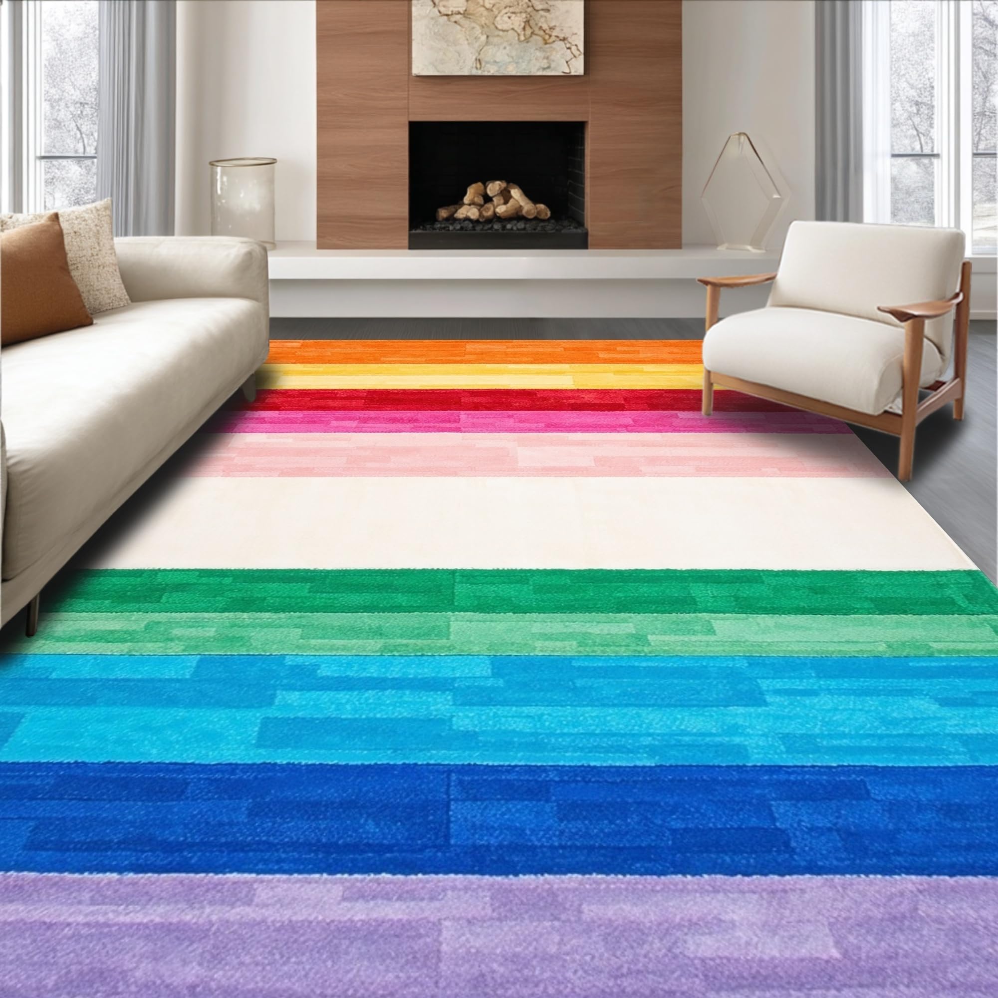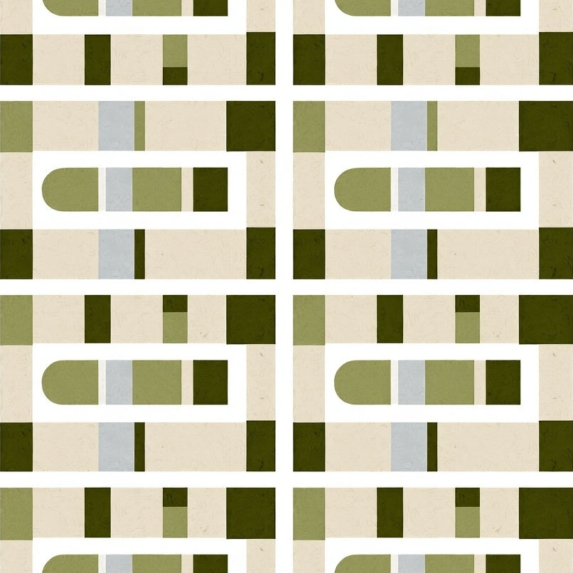 Abstract Mosaic Area with Subdued Neutral Color Blocks and Artistic Flair(Beige)