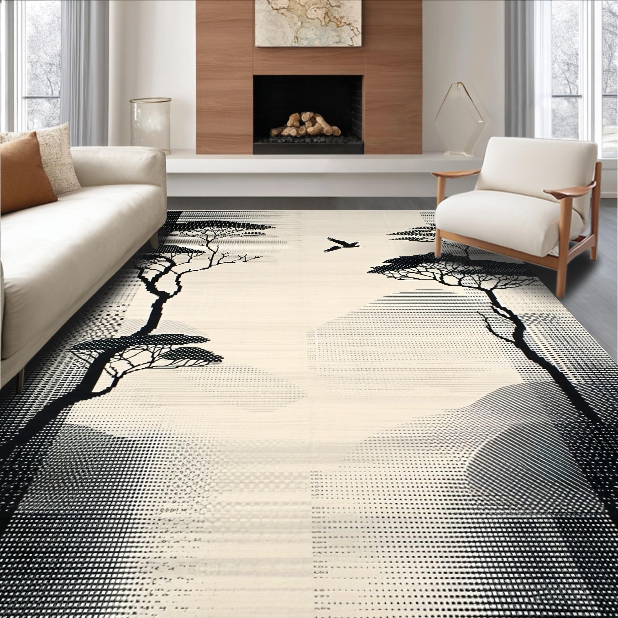 Abstract Savannah Chic Beige Field with Stark Black Formations(Black)