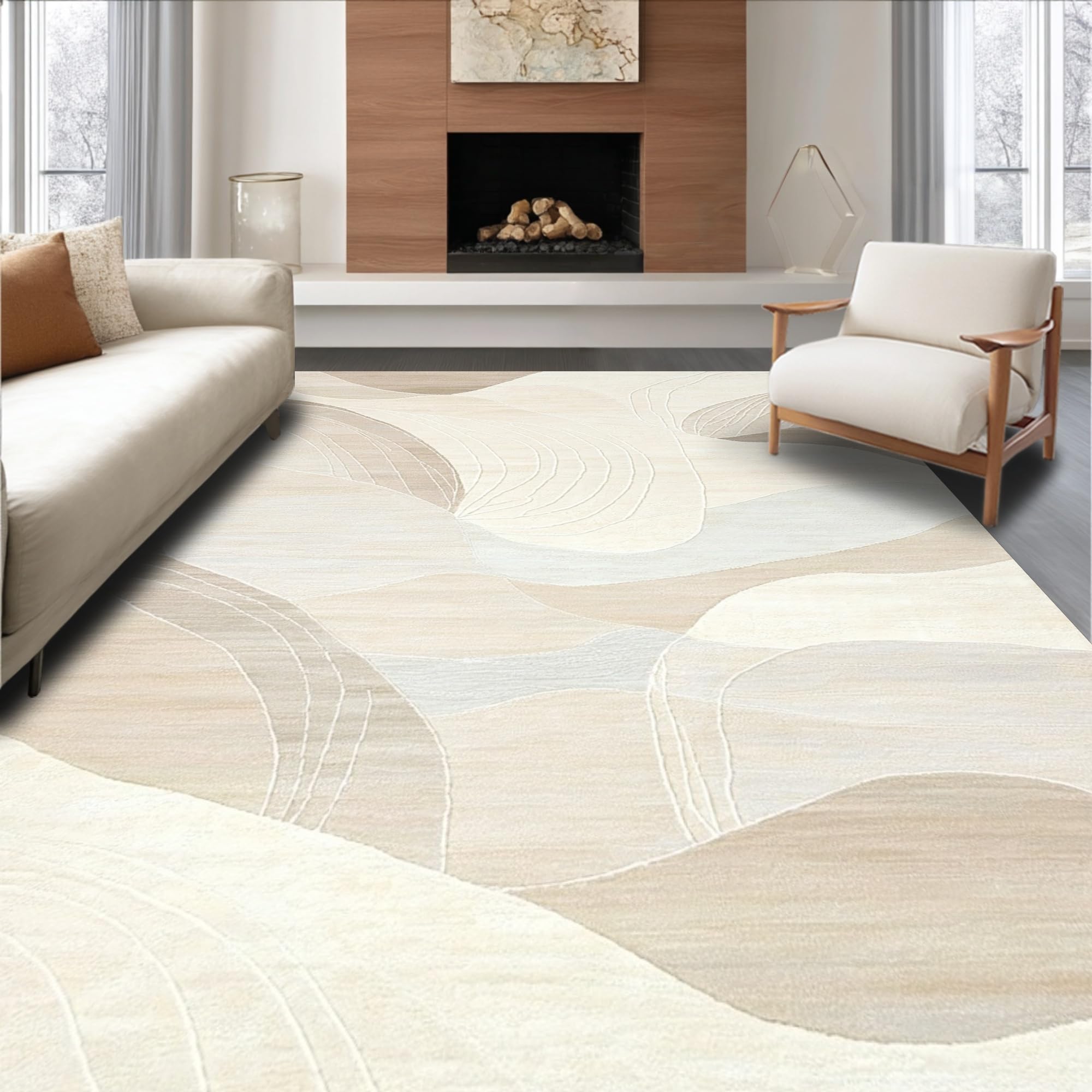 Abstract Waves Area for Home Decor Artistic Swirl Design(Beige)