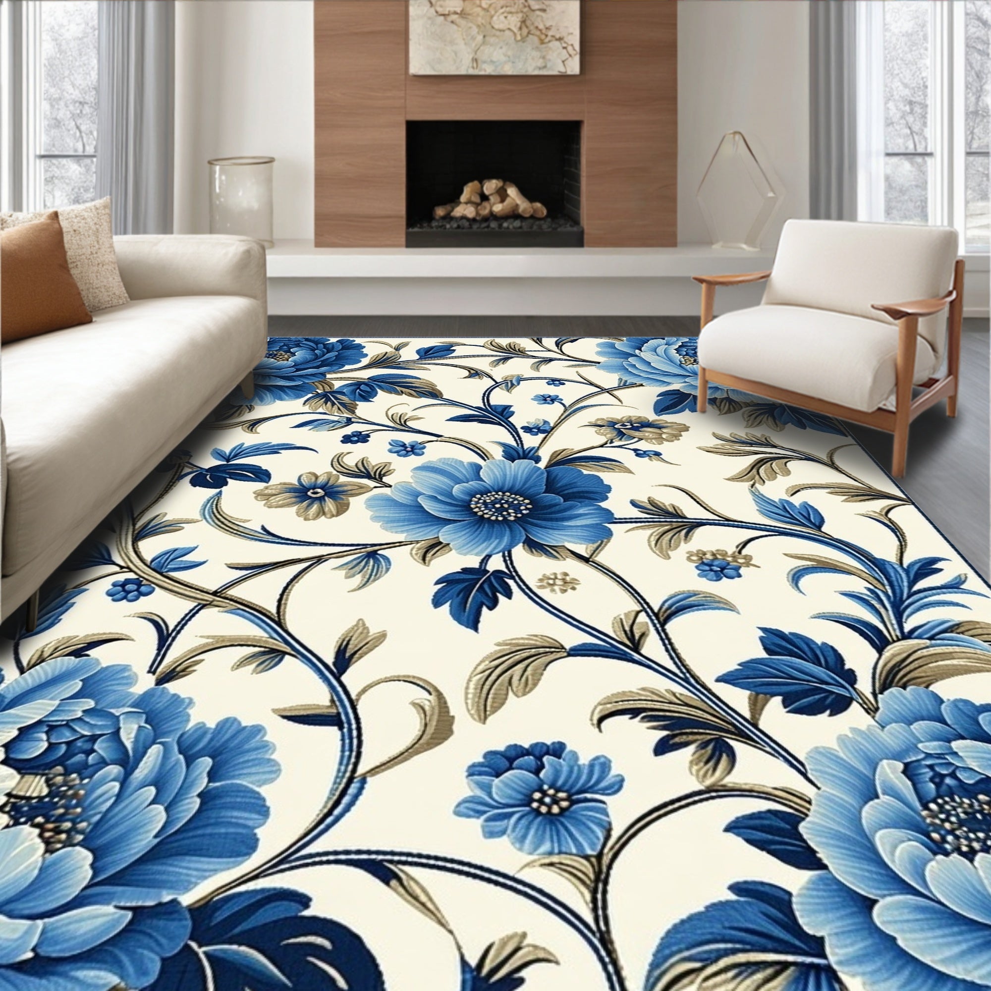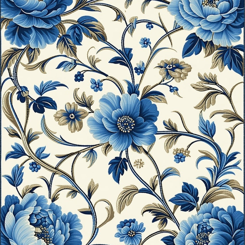 Chic Accent Featuring Navy and Beige Floral Motifs(Blue)