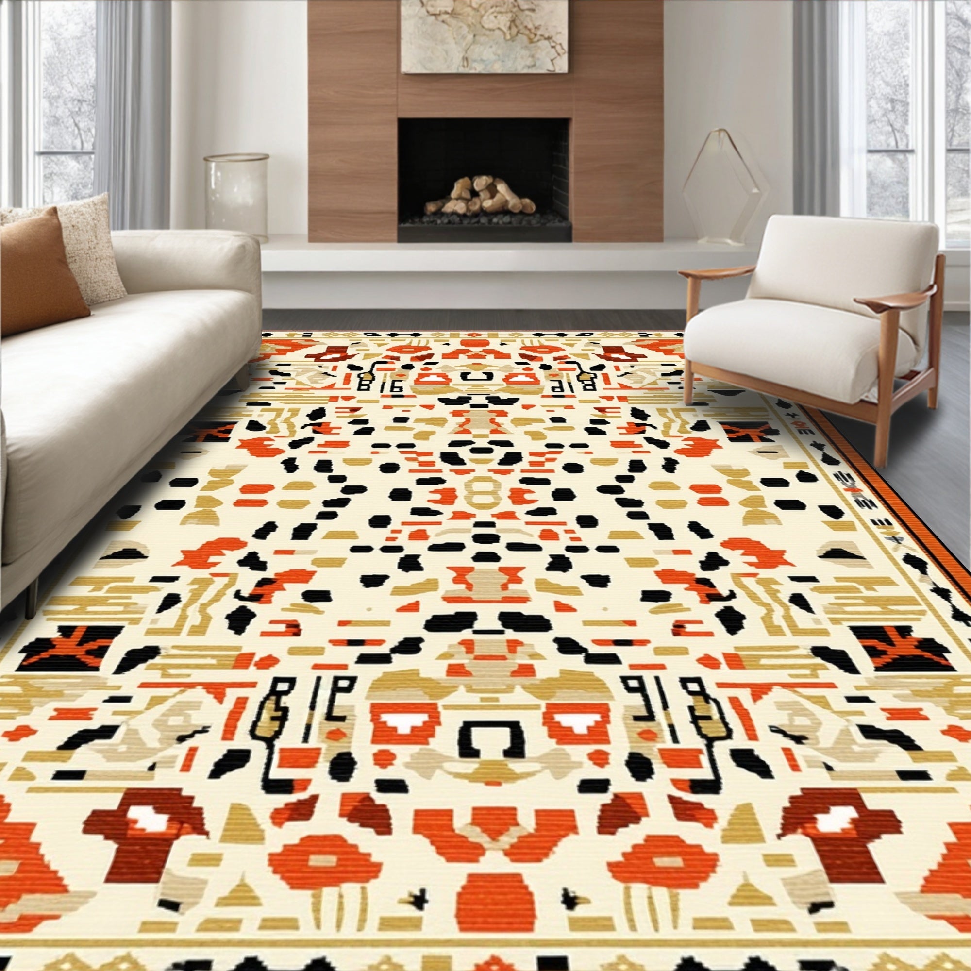 Chic Aesthetic White and Beige Designer Floor(Beige)