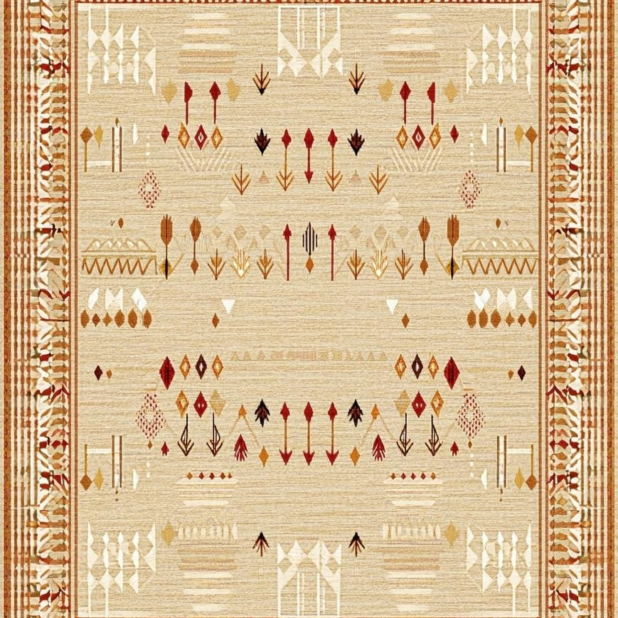 Chic Area with Distinct Geometric Borders in Earthy Color Palette(Beige)