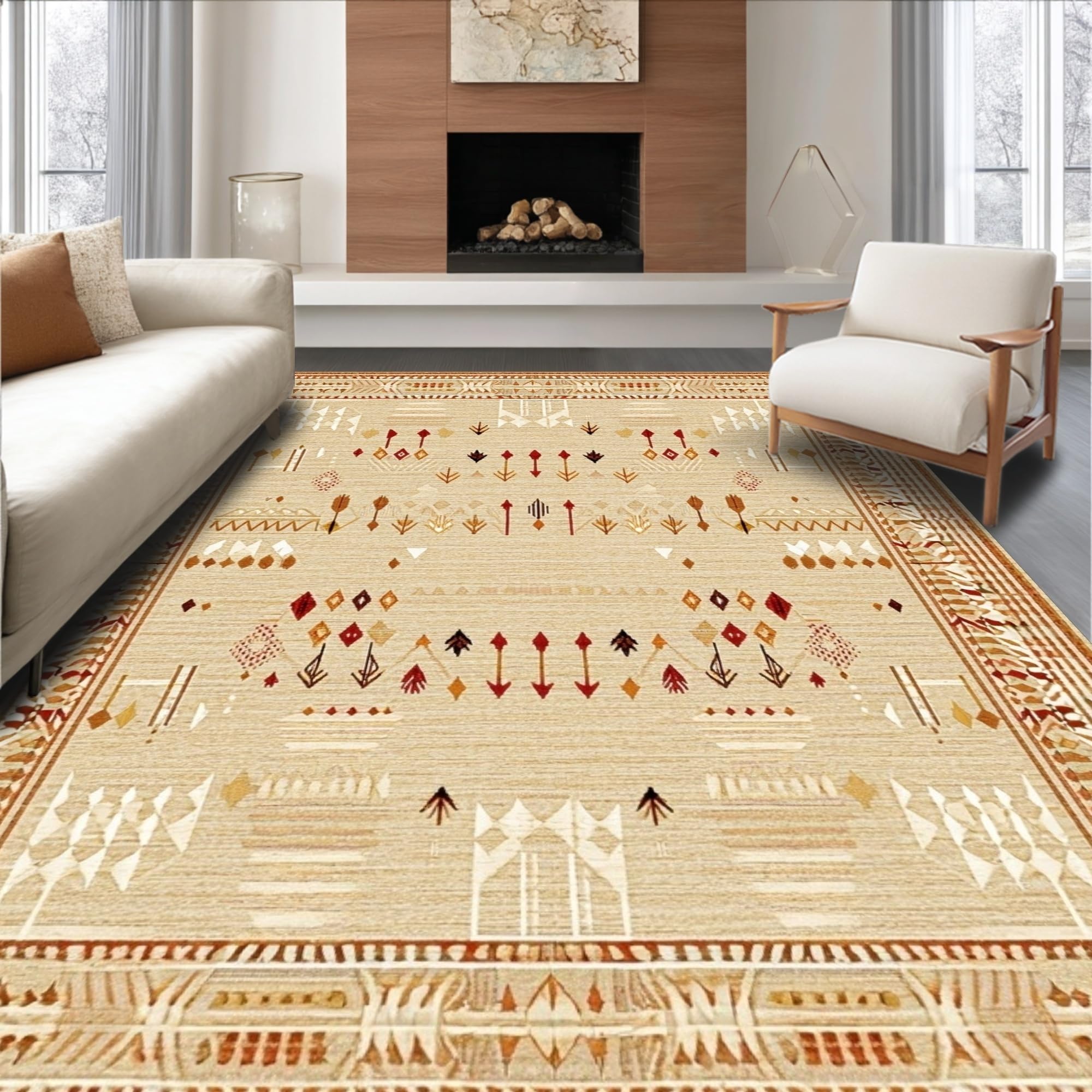 Chic Area with Meander Design in Neutral Beige and Brown(Beige)