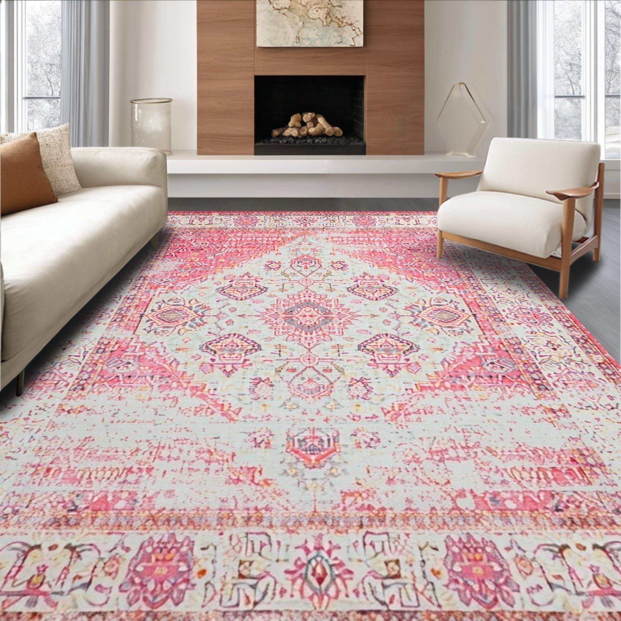 Chic Distressed Area Beige Ivory Shabby Charm Medallion Design(Beige)