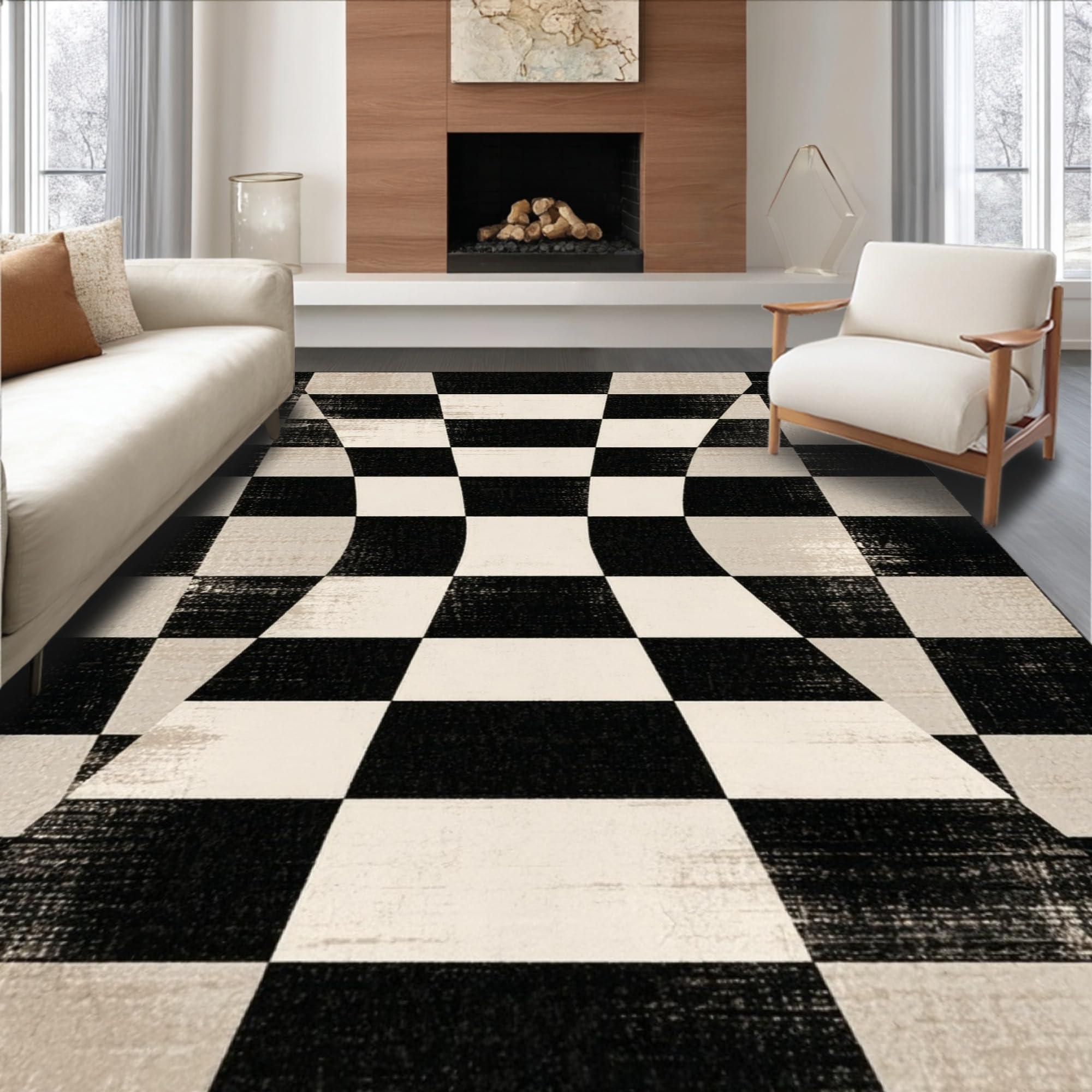 Chic Entryway Featuring Graphic Stripe Motif Minimalist Linear Art Style(Black)