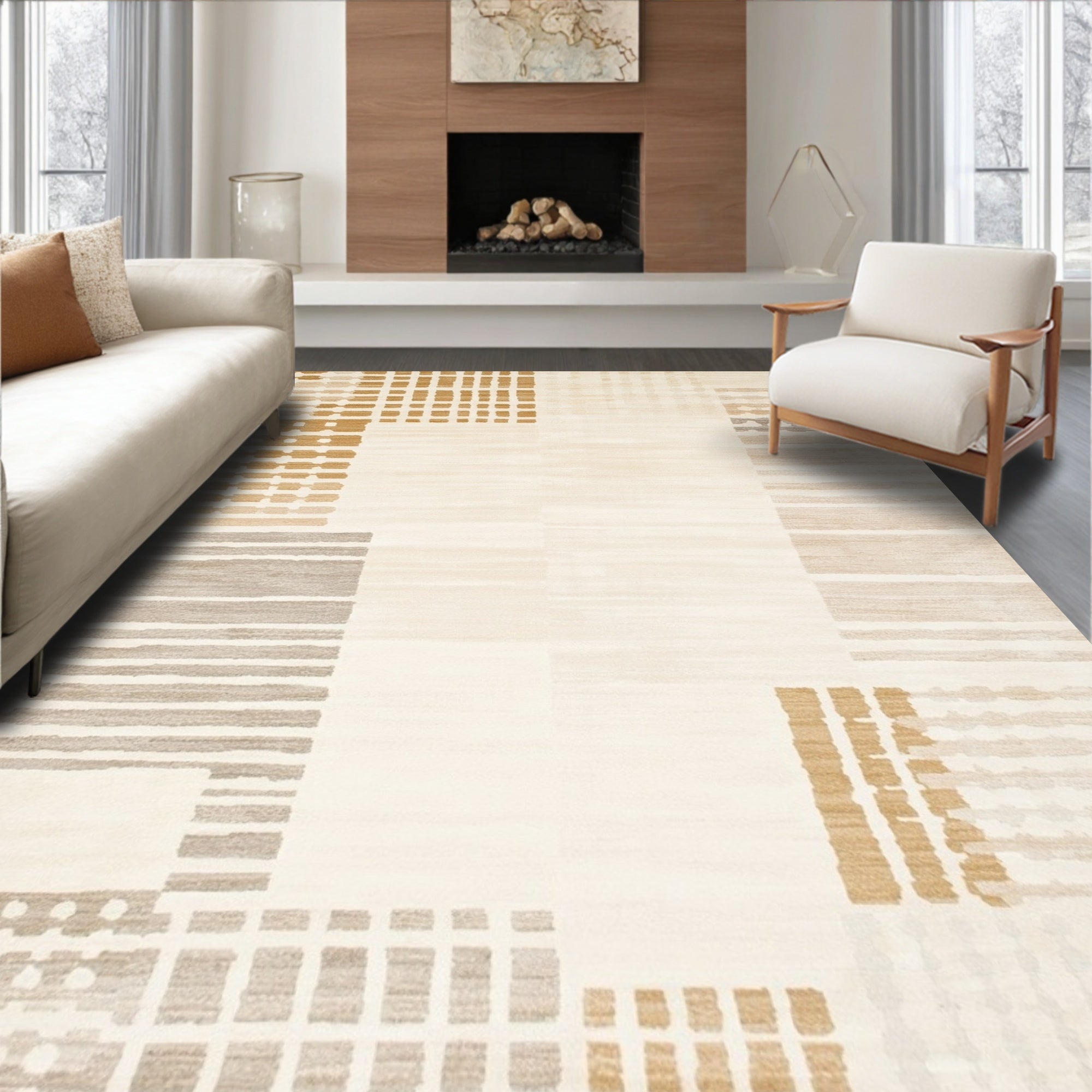 Chic Geometric Area in Warm Beige and Cream Tones(Beige)