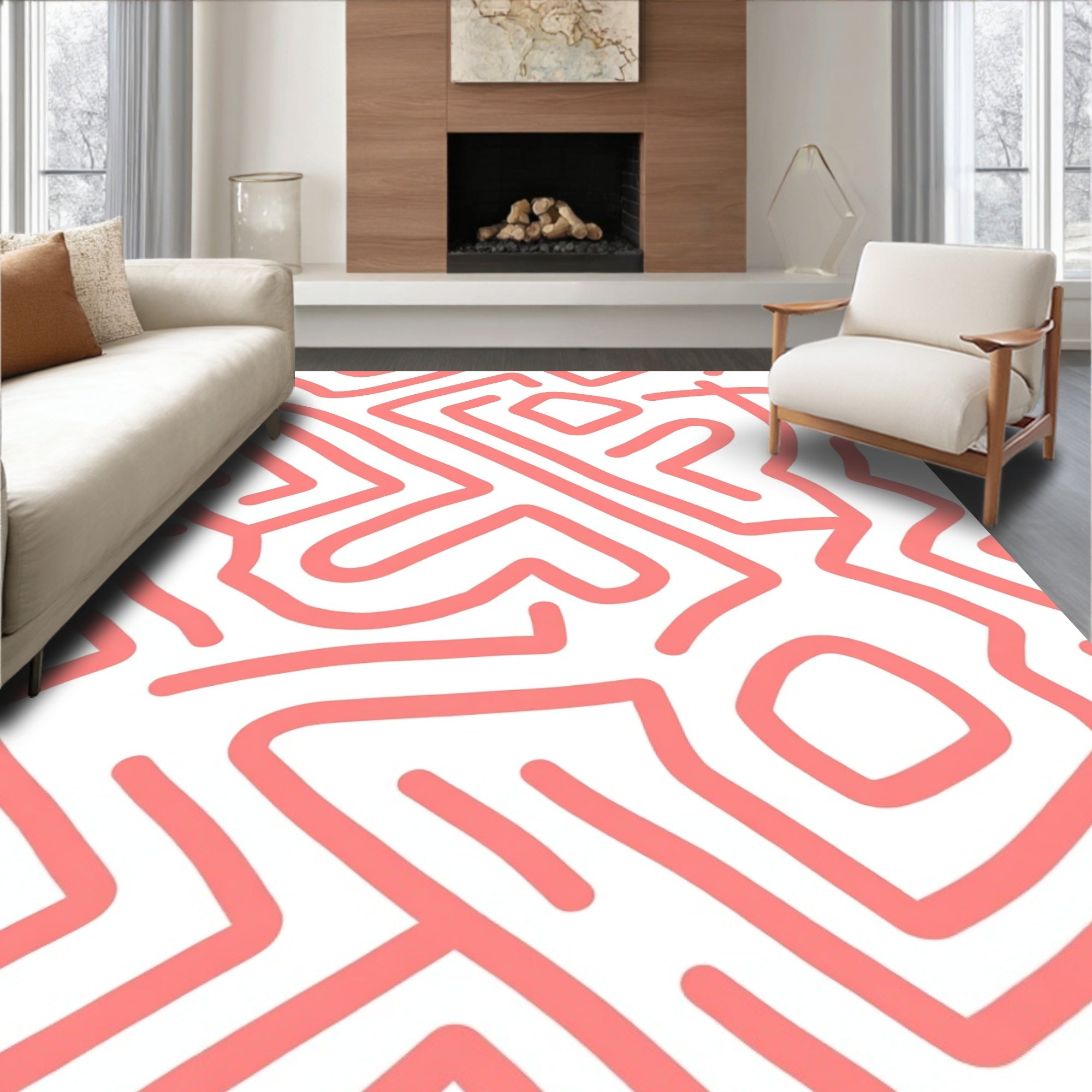 Chevron Wave Abstract Contemporary Floor Design(Pink)