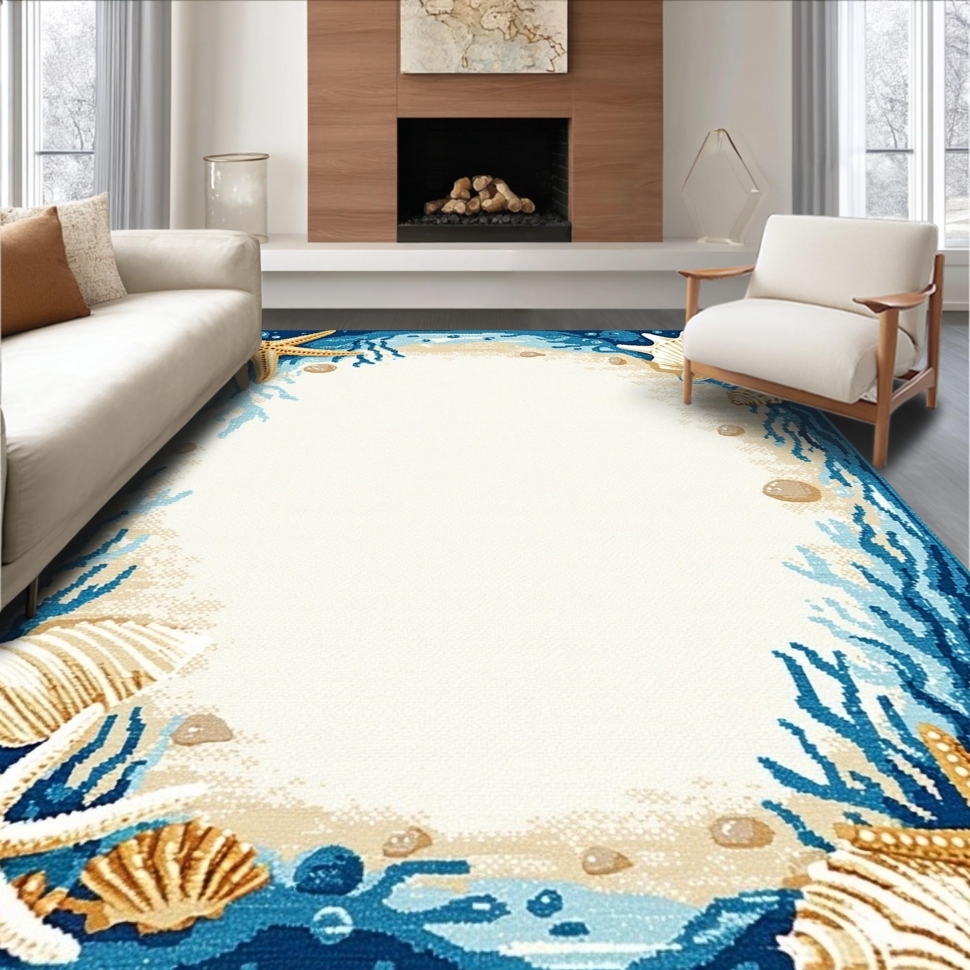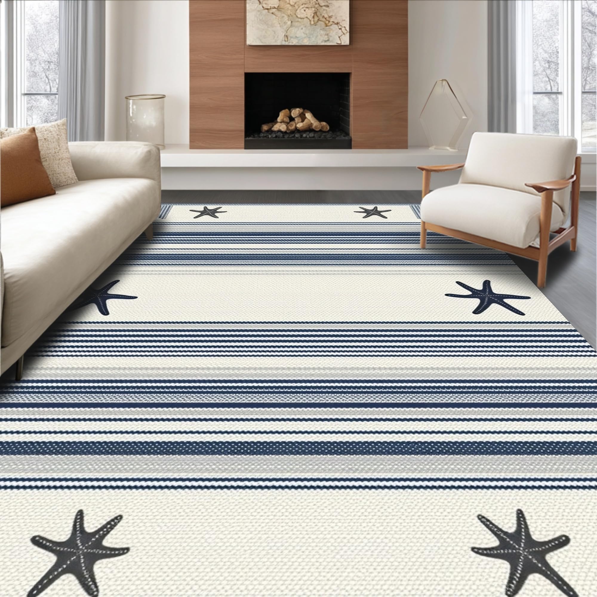 Chic Nautical Area with Playful Seahorse and Starfish Accents(Blue)