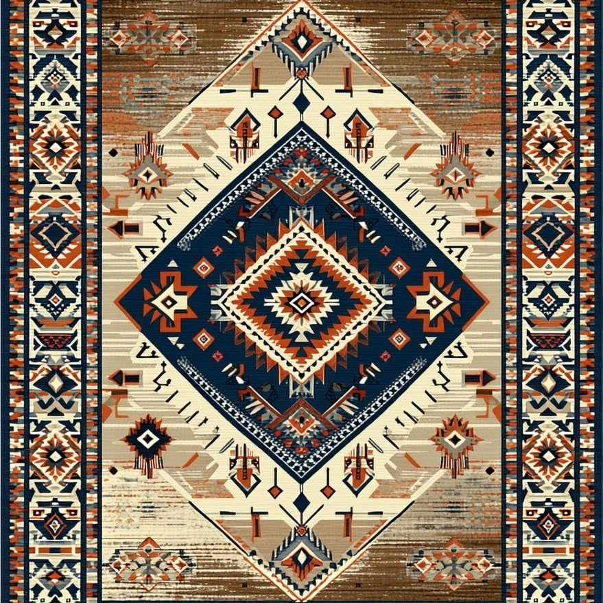 Chic Southwestern Tribal Design Area in Vibrant Multicolor Palette(Orange)