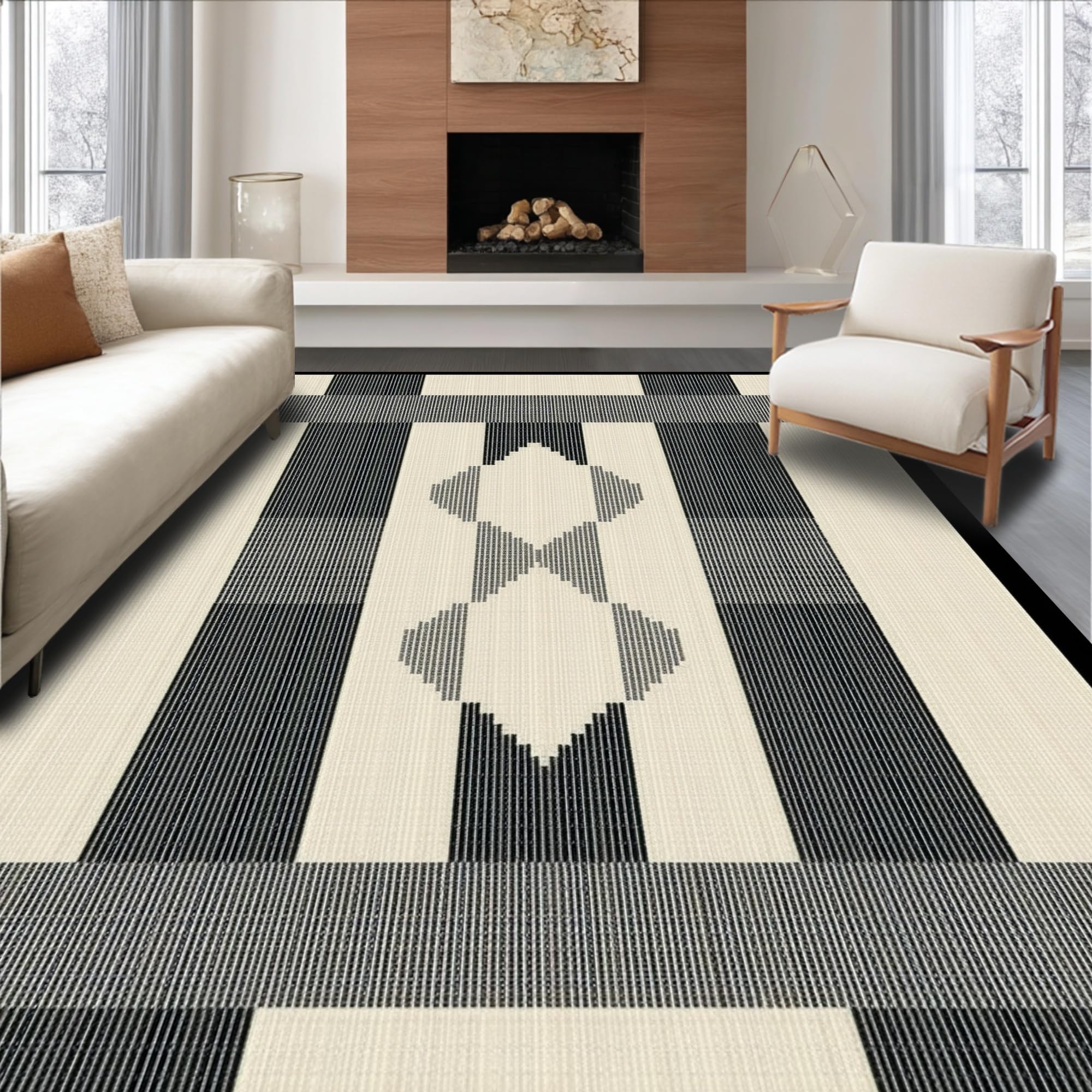 Chic Striped Carpet for Entryway Patio Decor Modern Urban Area Rug(Black)