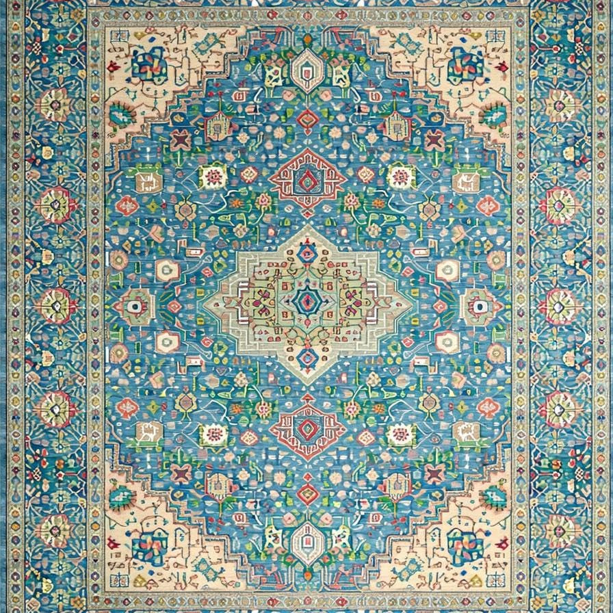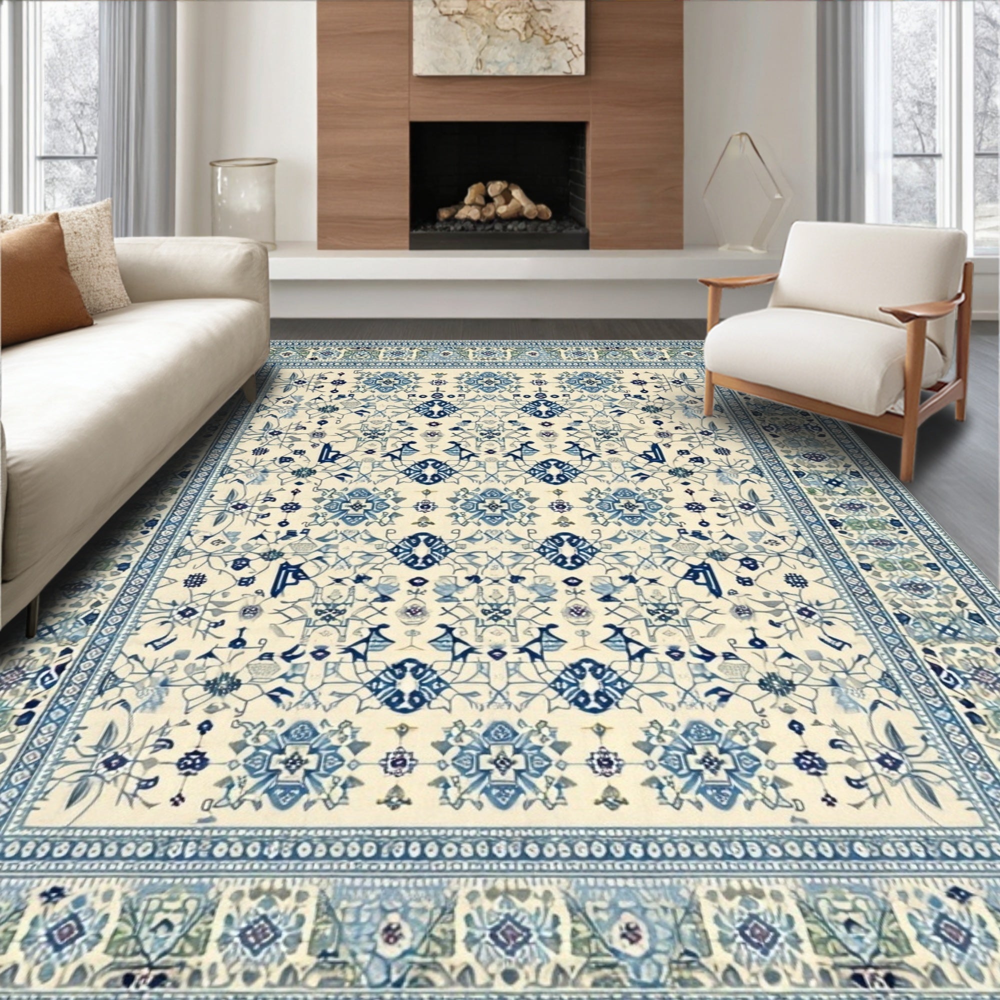 Chic Traditional Area with Luxurious Blue and Beige Accents(Beige)