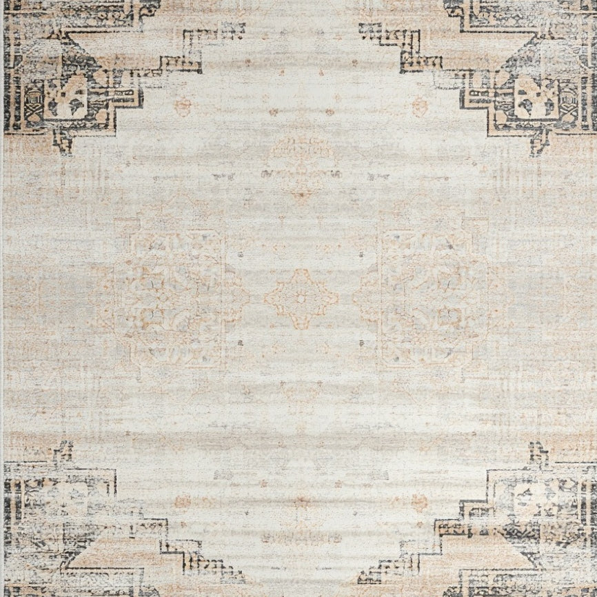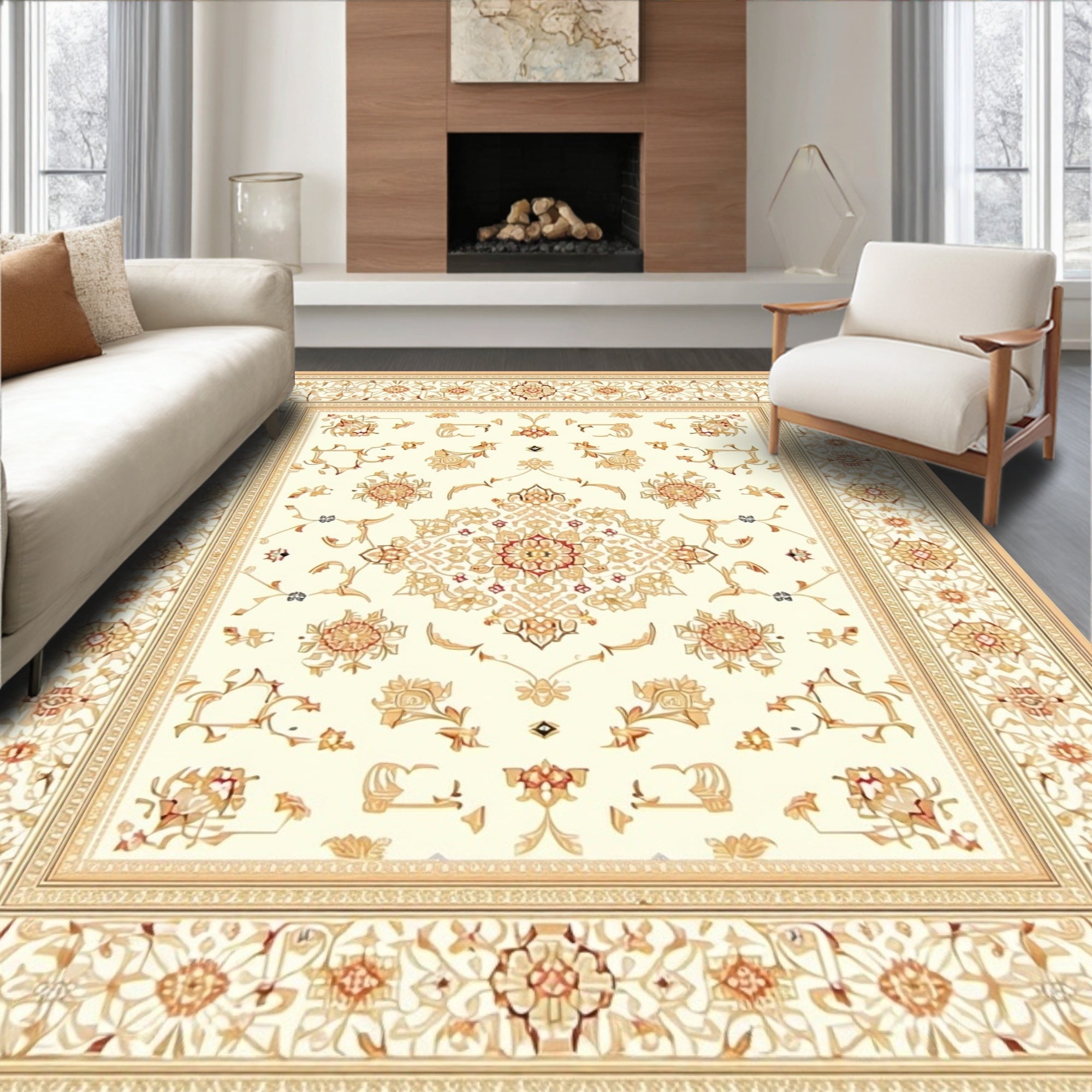 Classic Area Beige Oriental Medallion Design Easy Care(Ivory)