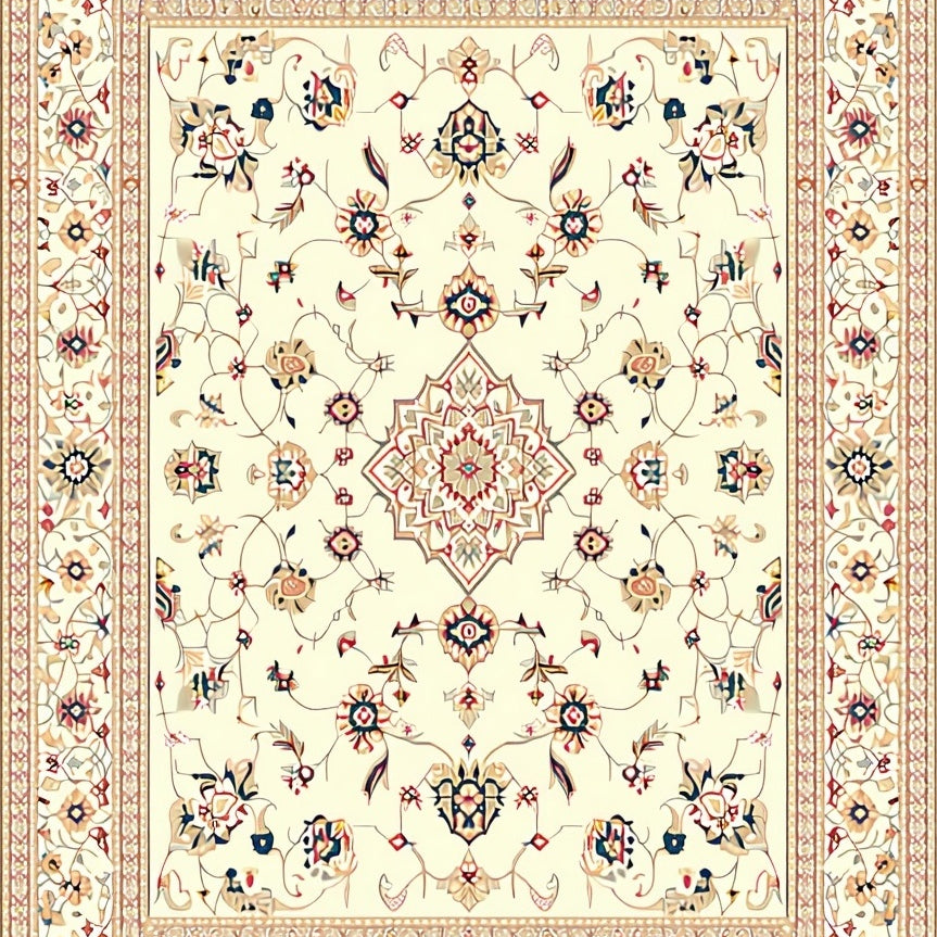 Classic Area with Subtle Floral Inspired Tiled Design(Ivory)