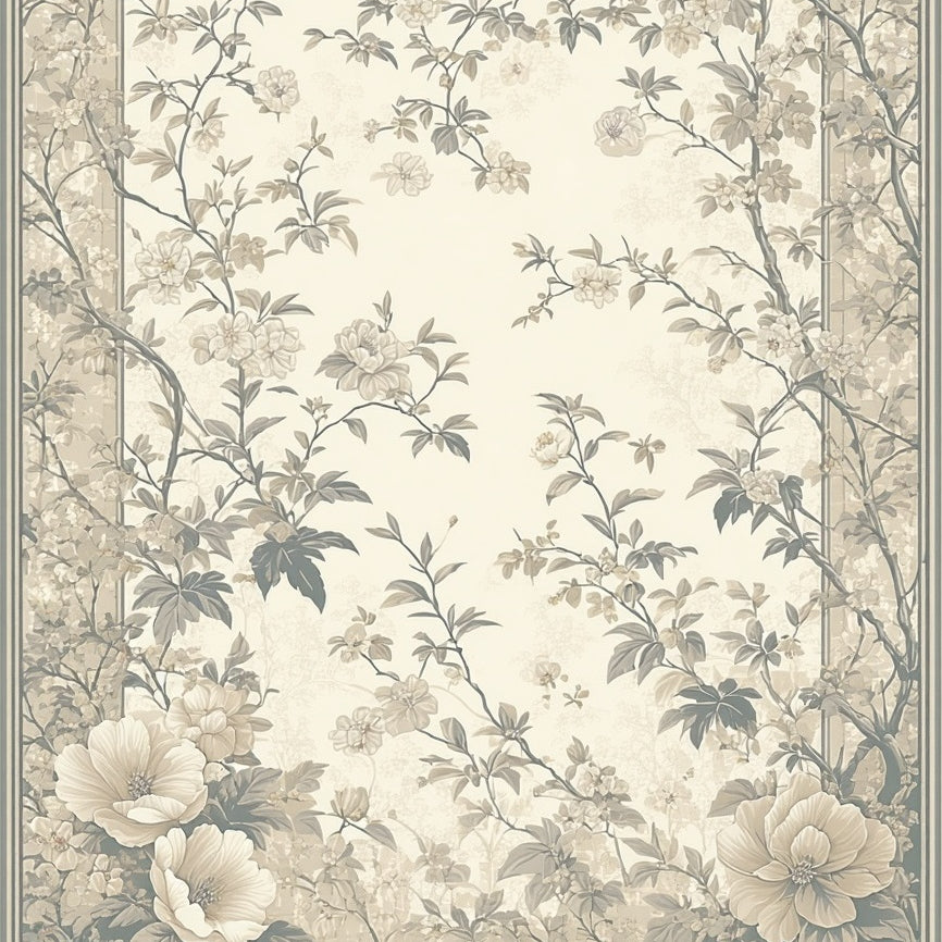 Classic Botanical in Smoke and Beige with Refined Floral Silhouettes(Beige)