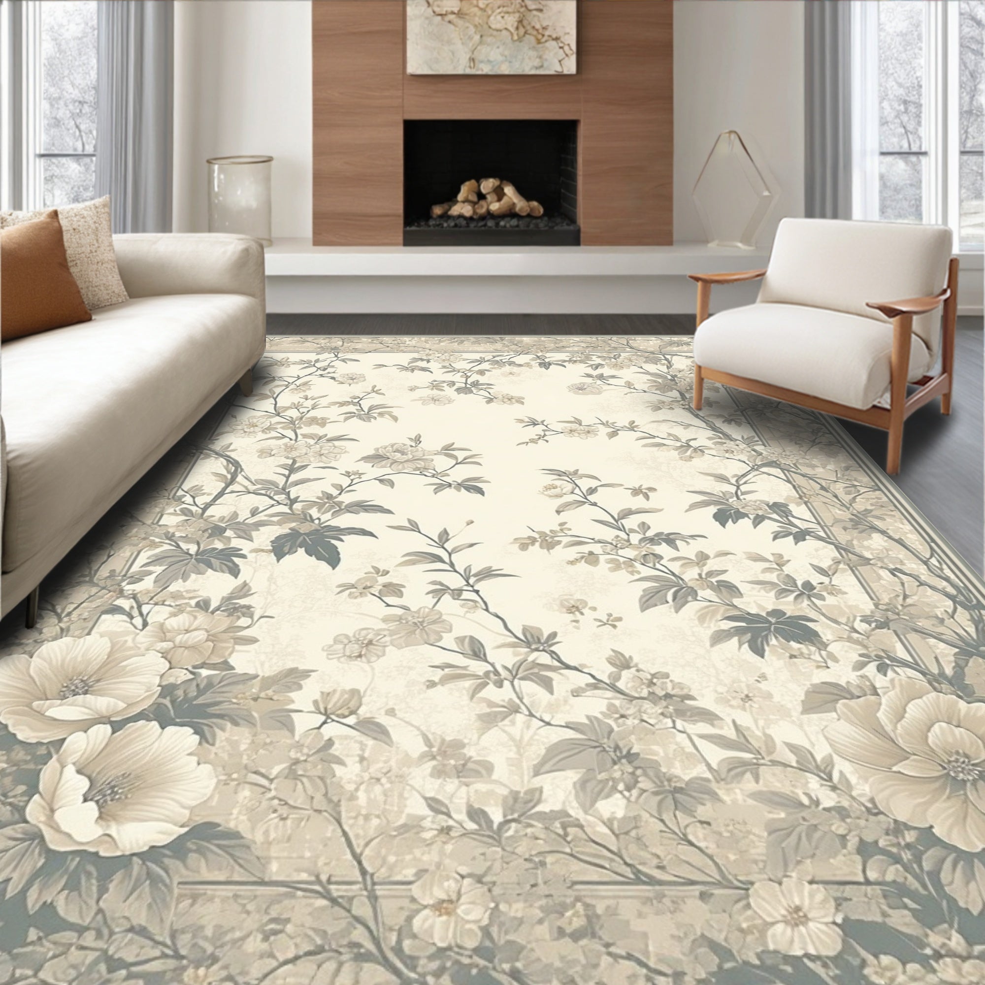 Classic Botanical Area with Graceful Floral for Cozy Ambiance(Beige)