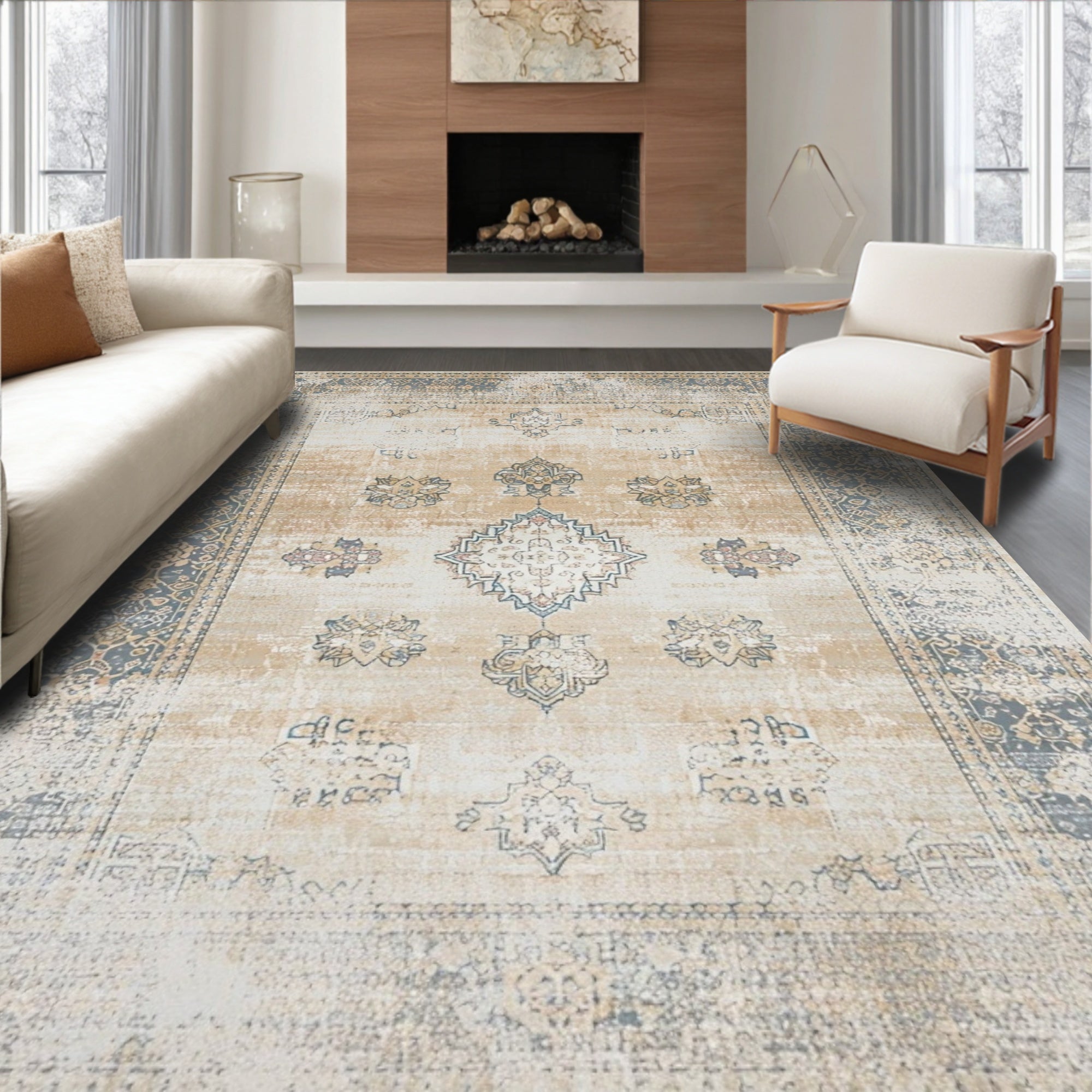 Classic Distressed Non Slip Vintage Look Area Beige(Beige)