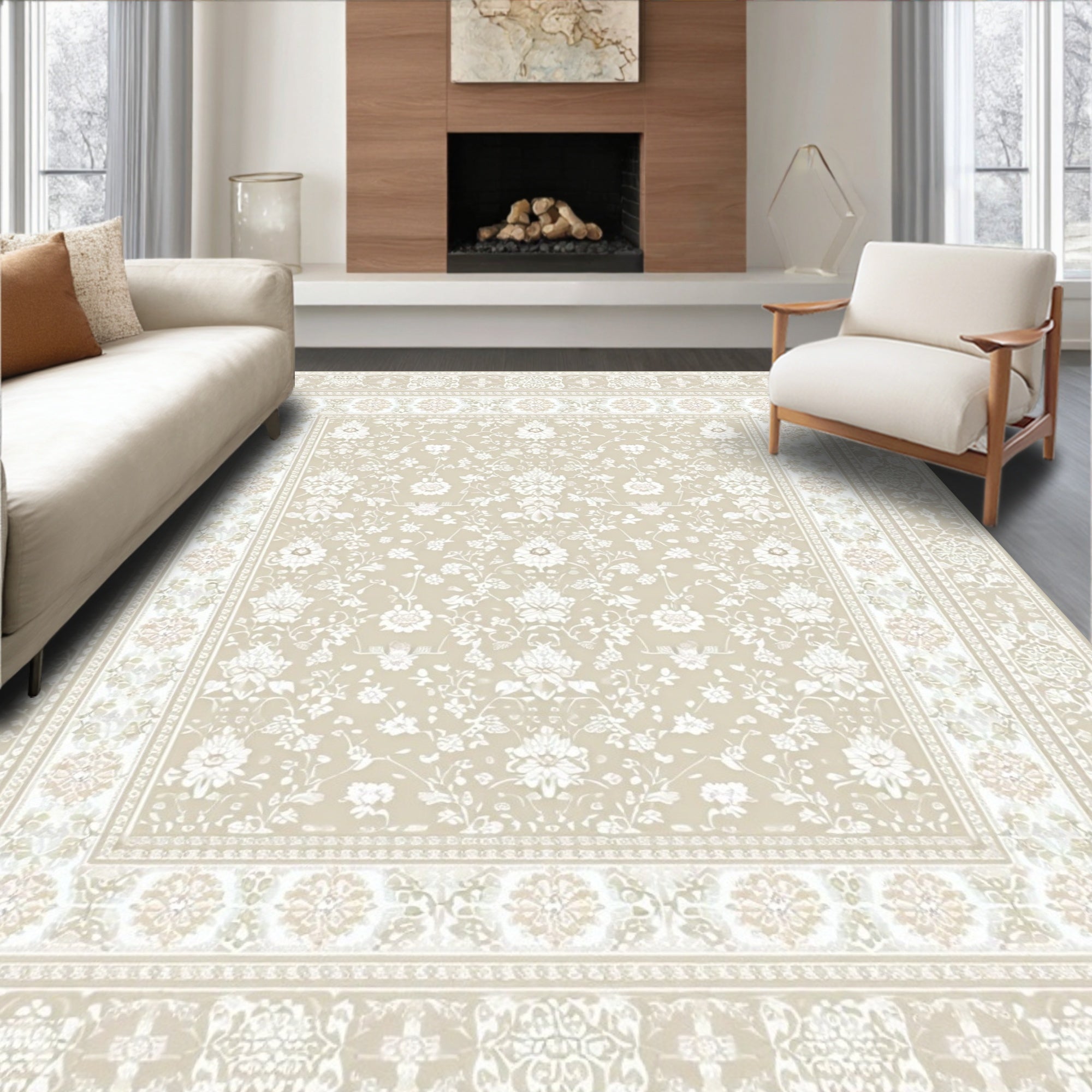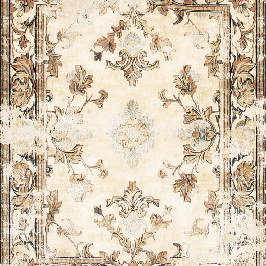 Classic Ornate Area with Distressed Damask and Timeless Neutral Shades(Beige)