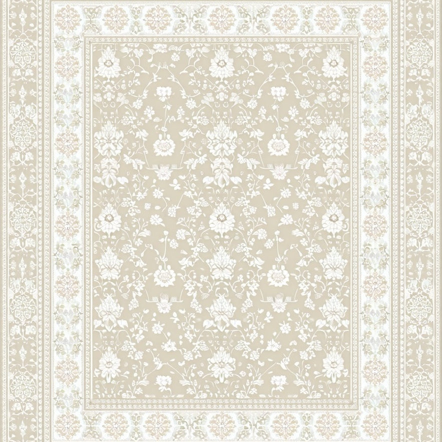 Classic Ornamental in Smoke and Beige with Detailed Lace Like Damask Motif(Beige)