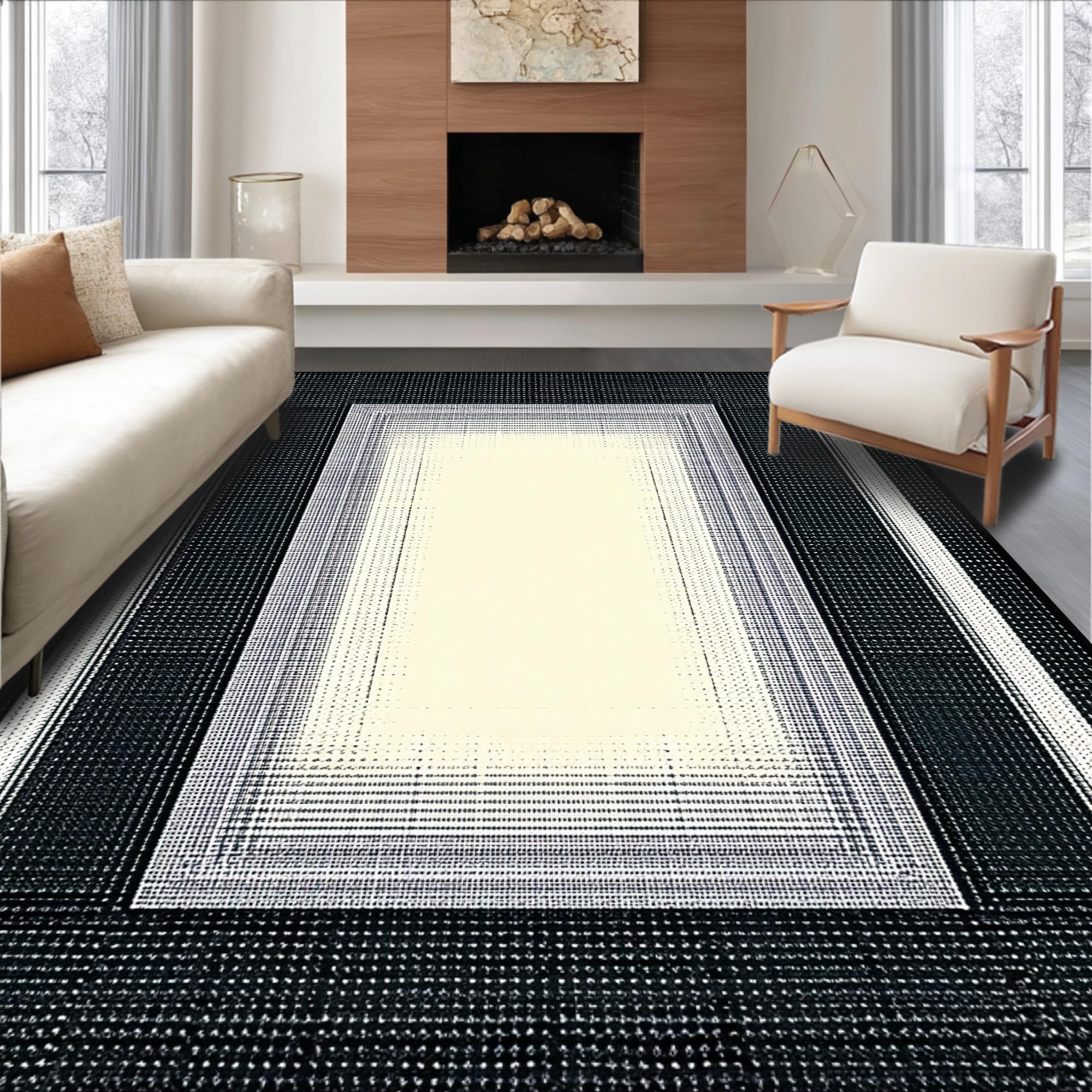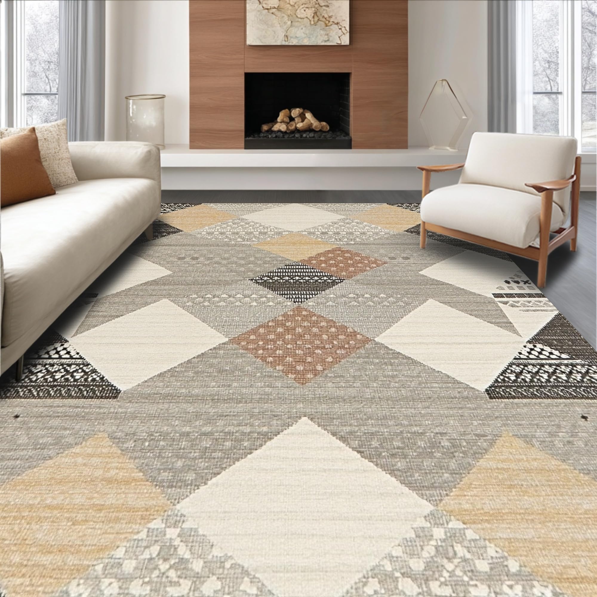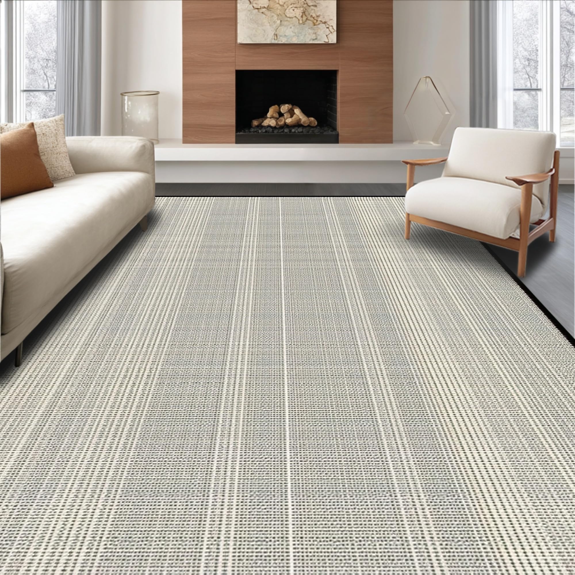 Classic Stripe Rug White and Beige Checkered Design(Beige)