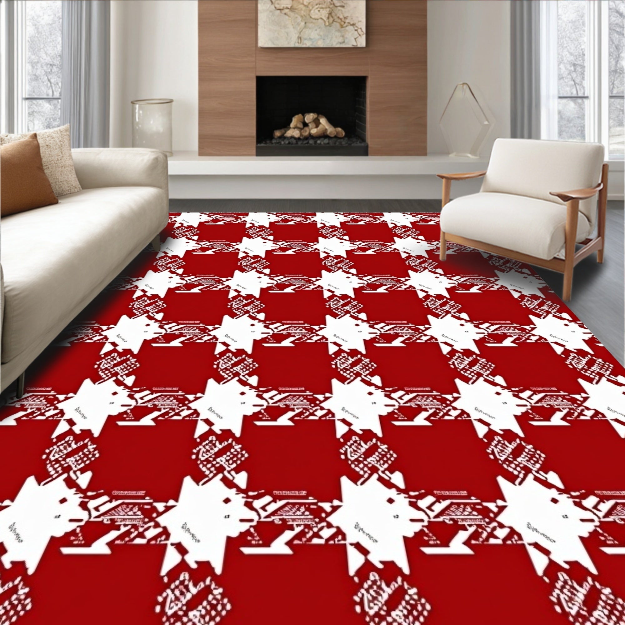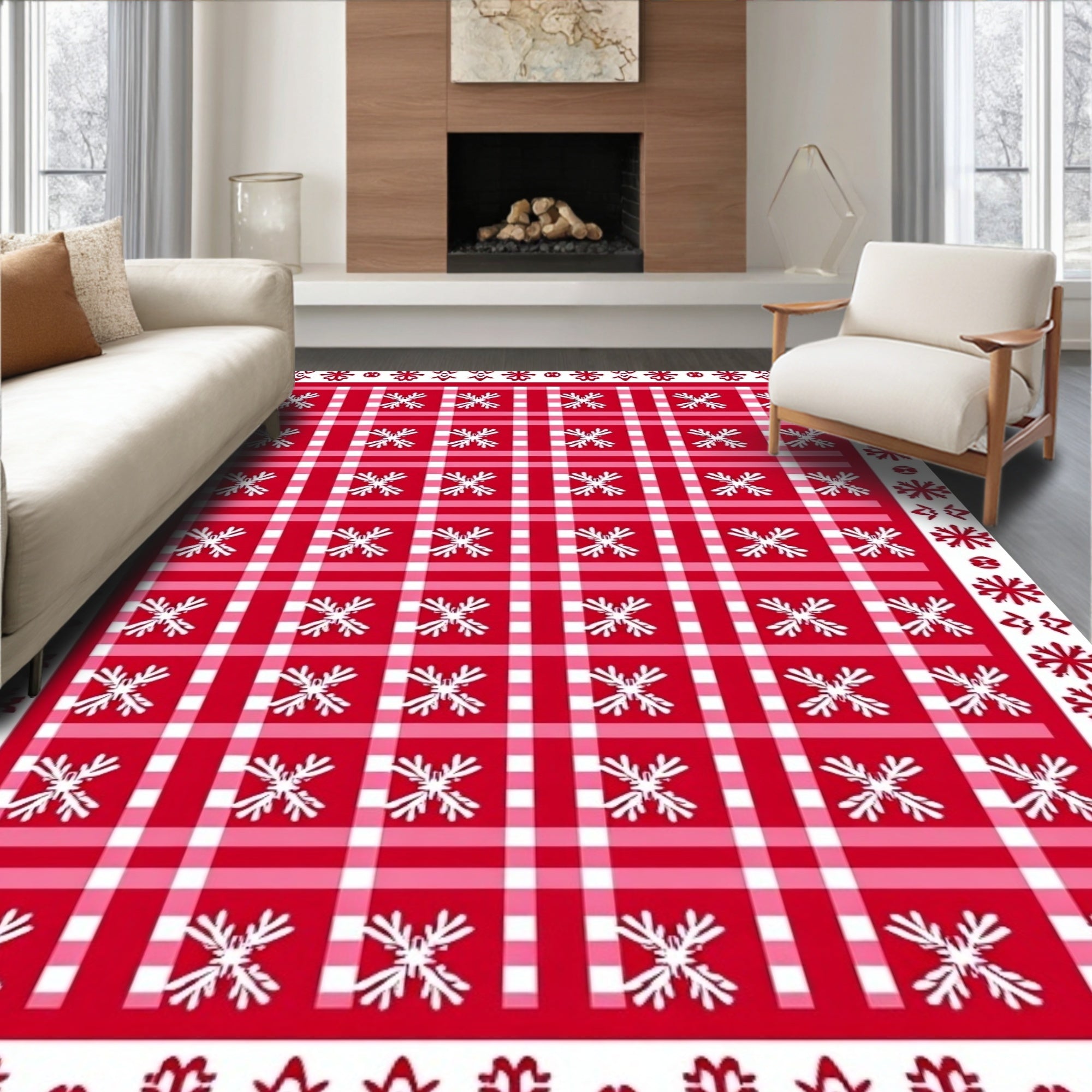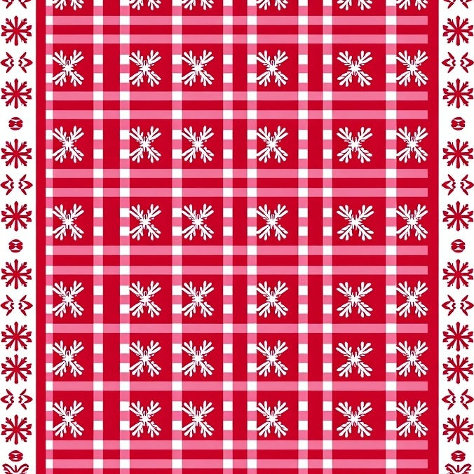 Classic Tartan Holiday Check with Festive Border Motifs(Red)