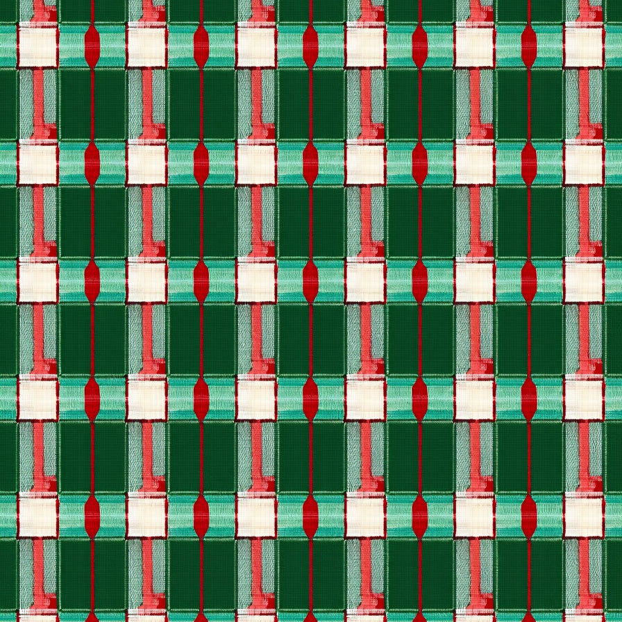 Classic Tartan Motif Showcasing Rich Ruby and Alabaster Hues(Green)