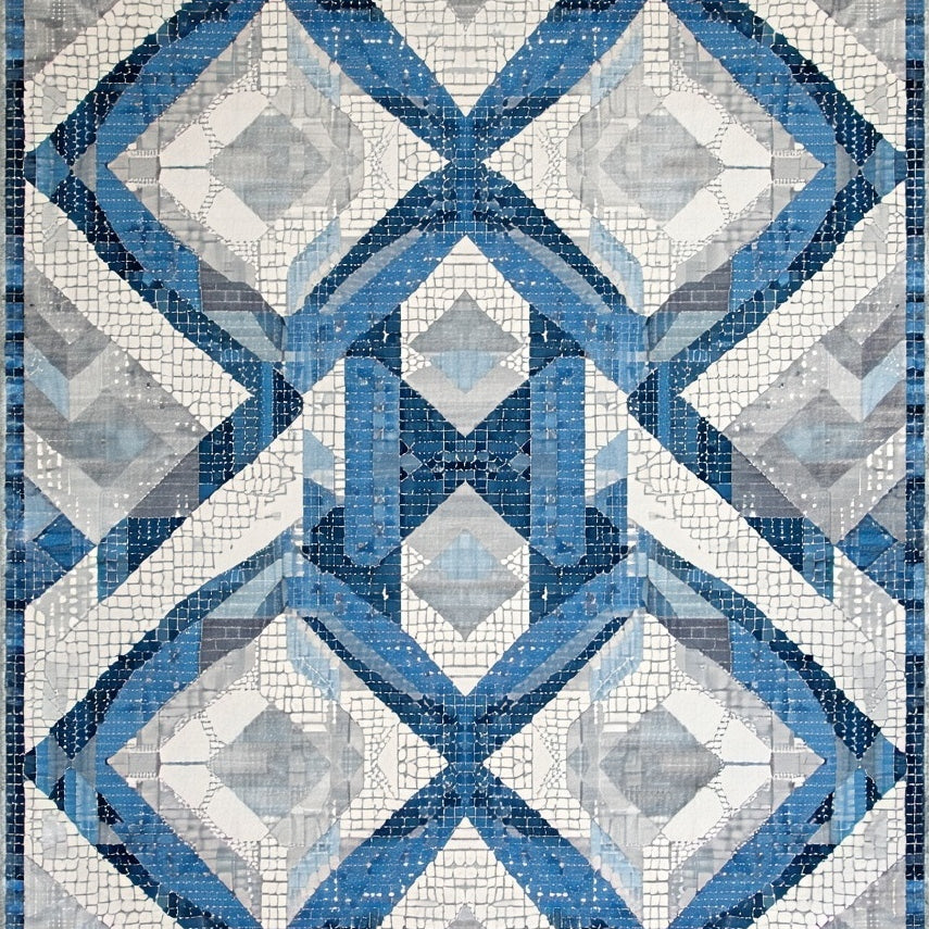 Clifton Collection Modern Geometric Floor Grey Blue(Blue)