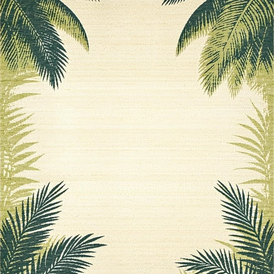 Coastal Palm Leaf Area in Blue Grey and Beige Hues(Gray)