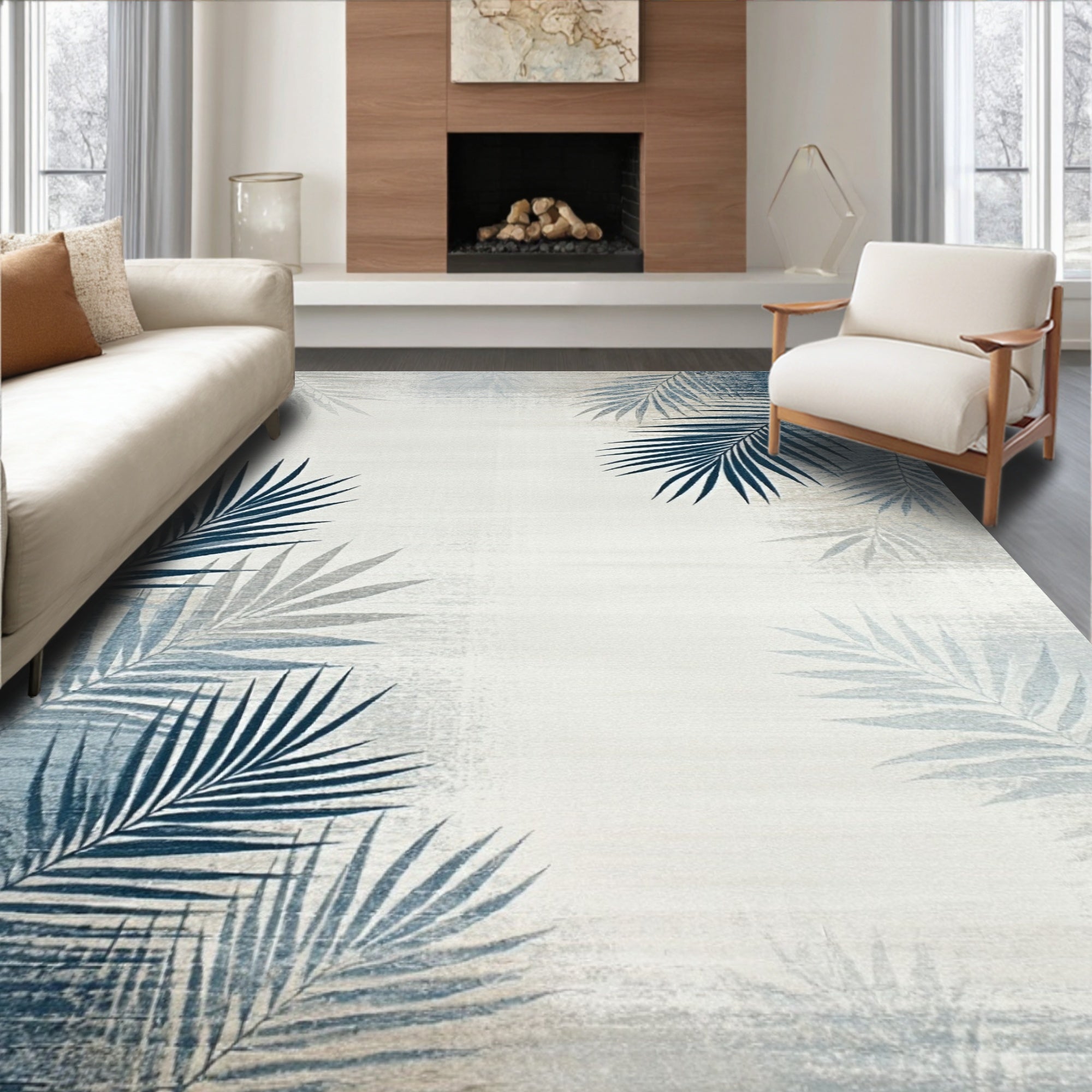 Coastal Retreat Area Rug with Artistic Tropical Foliage and Crisp Leaf Outlines(Blue)