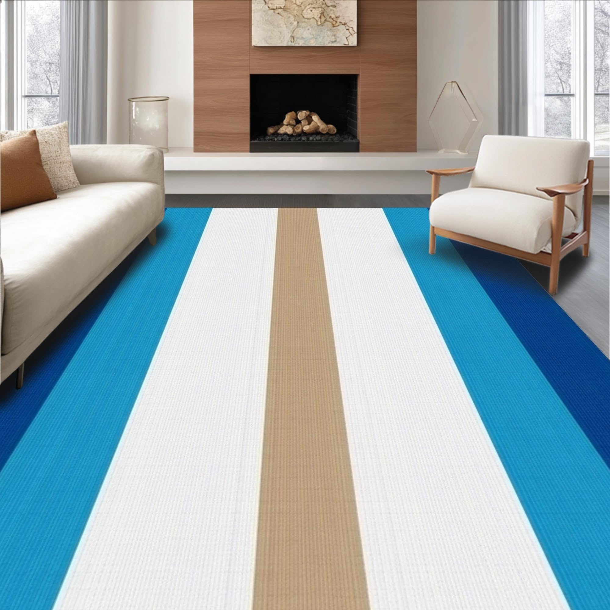 Coastal Tide Nautical Area Rug Ocean Wave Design Carpet(Blue)