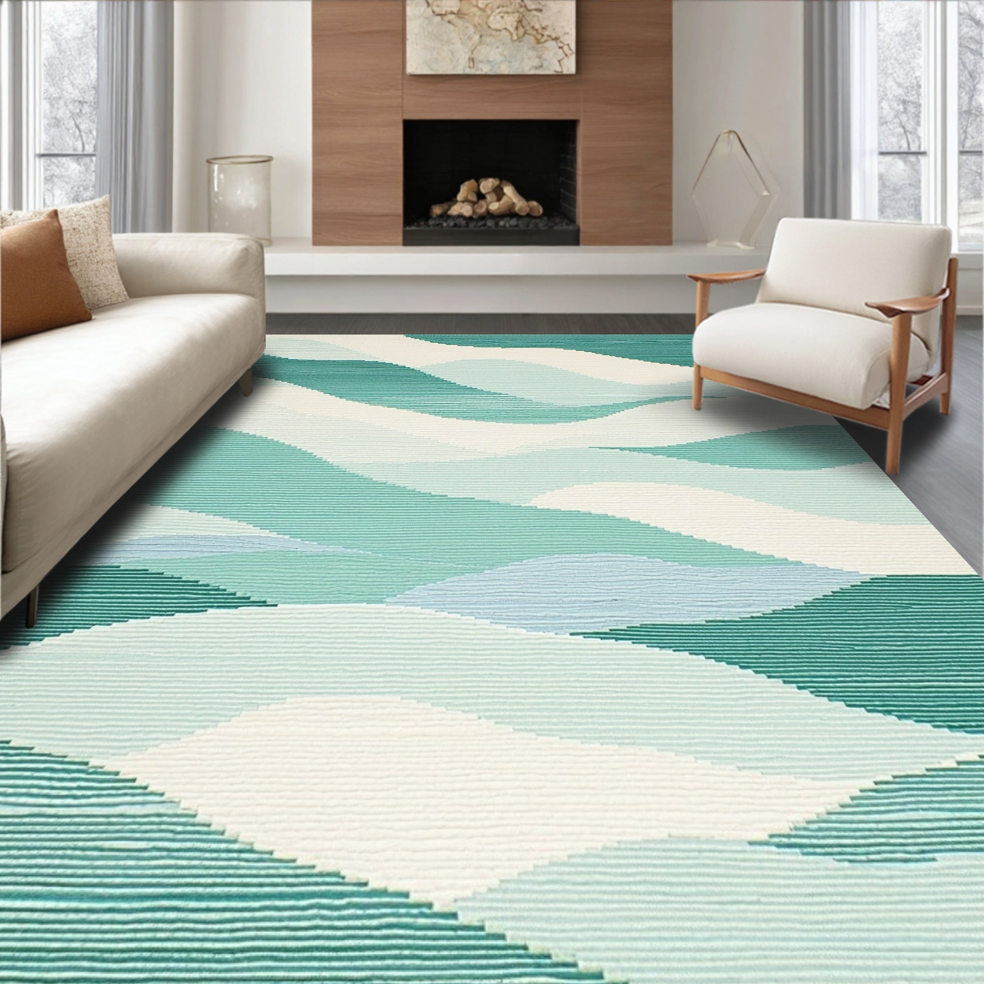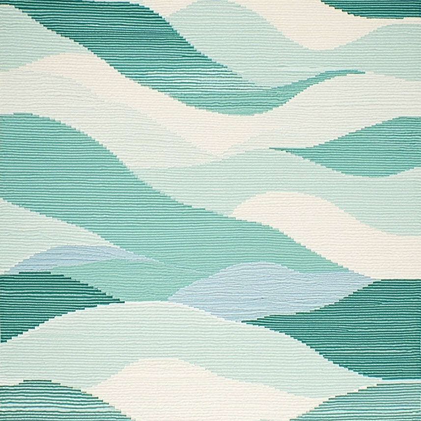 Coastal Wave Rug with Mint and Off White Textures(Ivory)