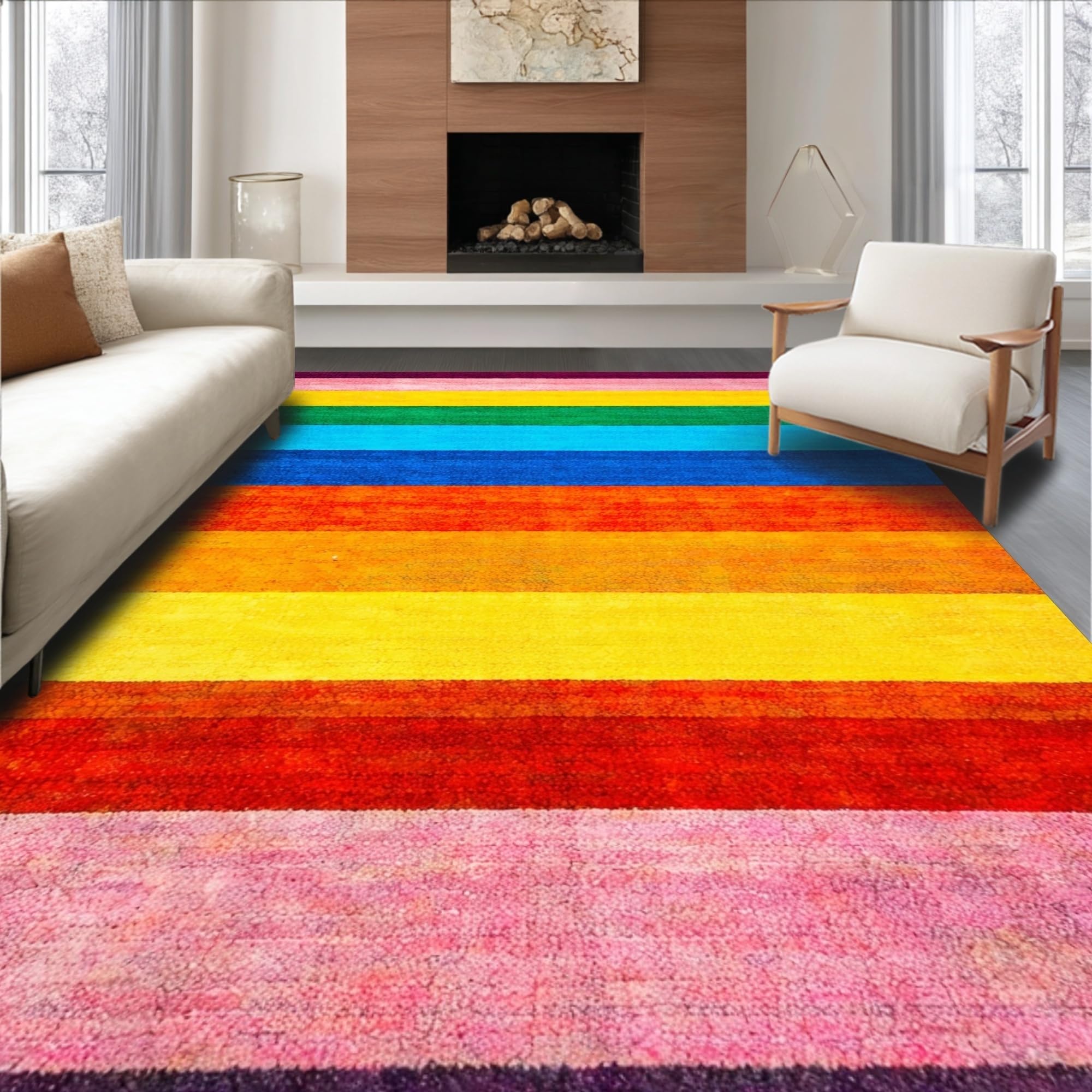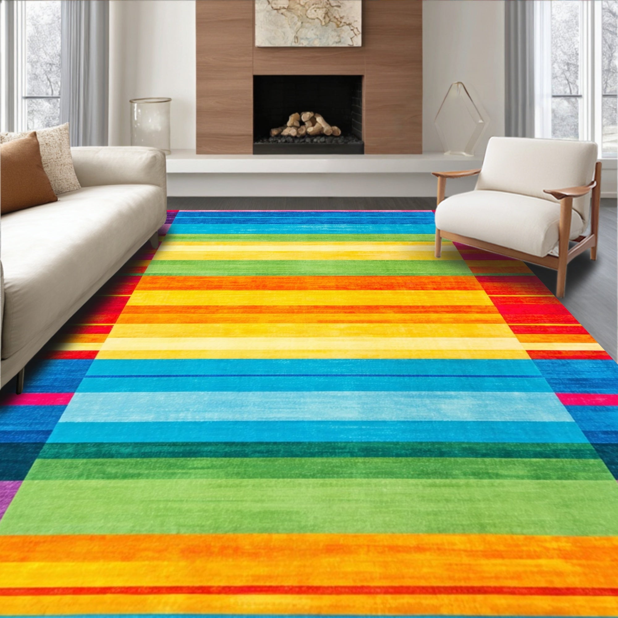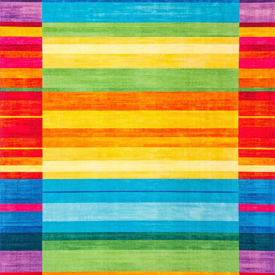 Colorful Fiesta Stripe Rug With Durable Backing For Patio And Home Decor(Blue)